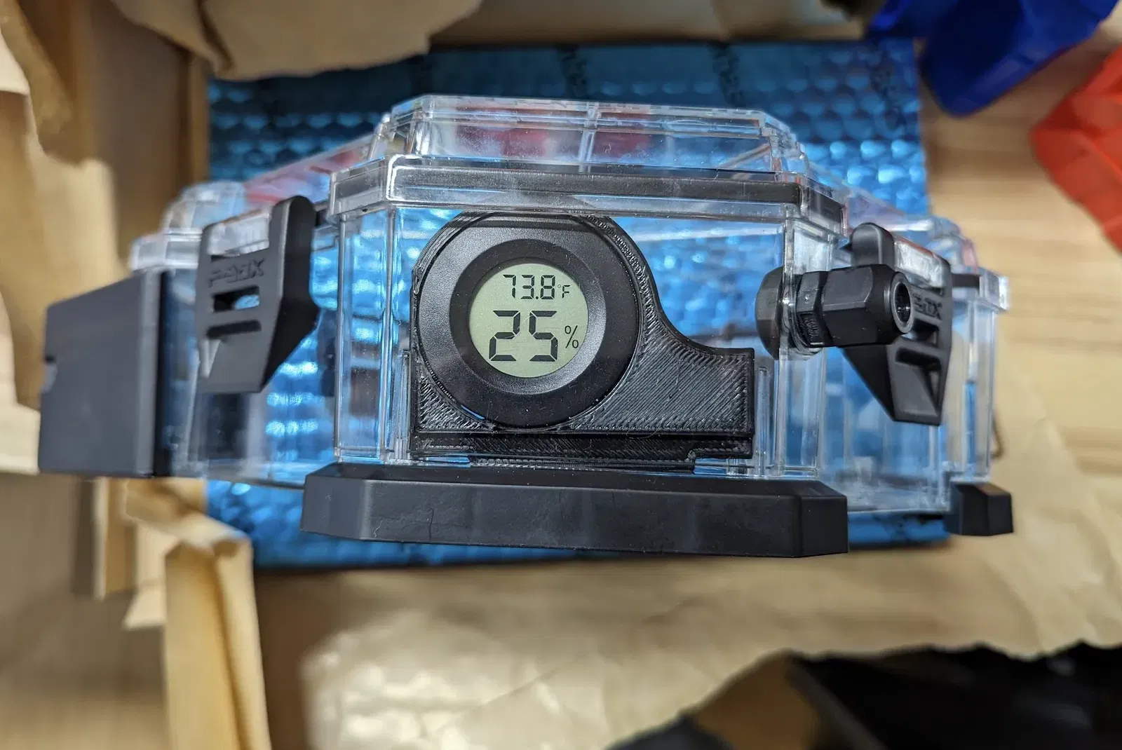 Muốn gắn cảm biến độ ẩm vô F-Box mà không chiếm chỗ khay hút ẩm? Adapter này sẽ giúp bạn gắn cảm biến đường kính 41mm vô phía trước F-Box, ngay chỗ dây filament ra. Nhấn mạnh là nó hơi khít nha, cứ ấn mạnh xuống là vô thôi.