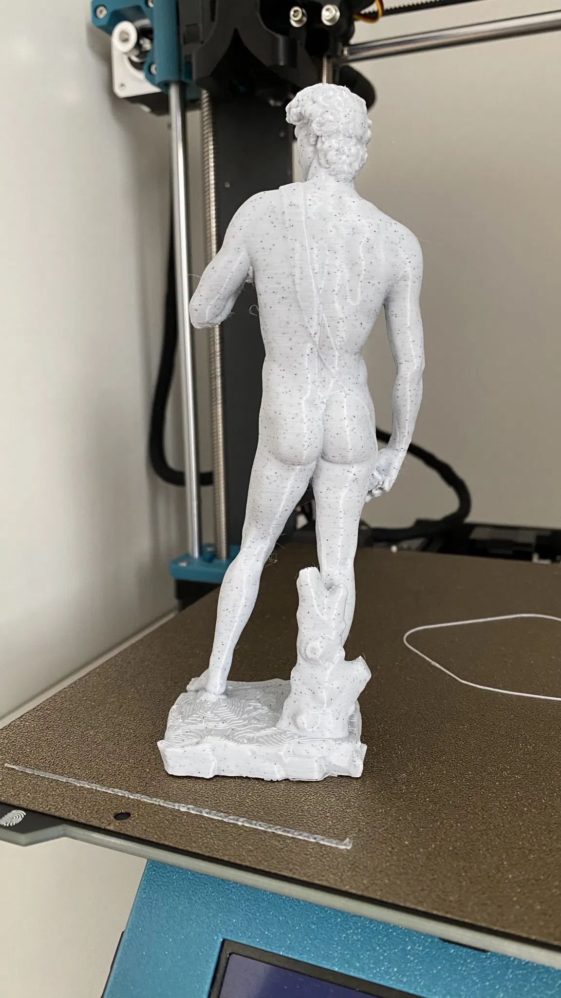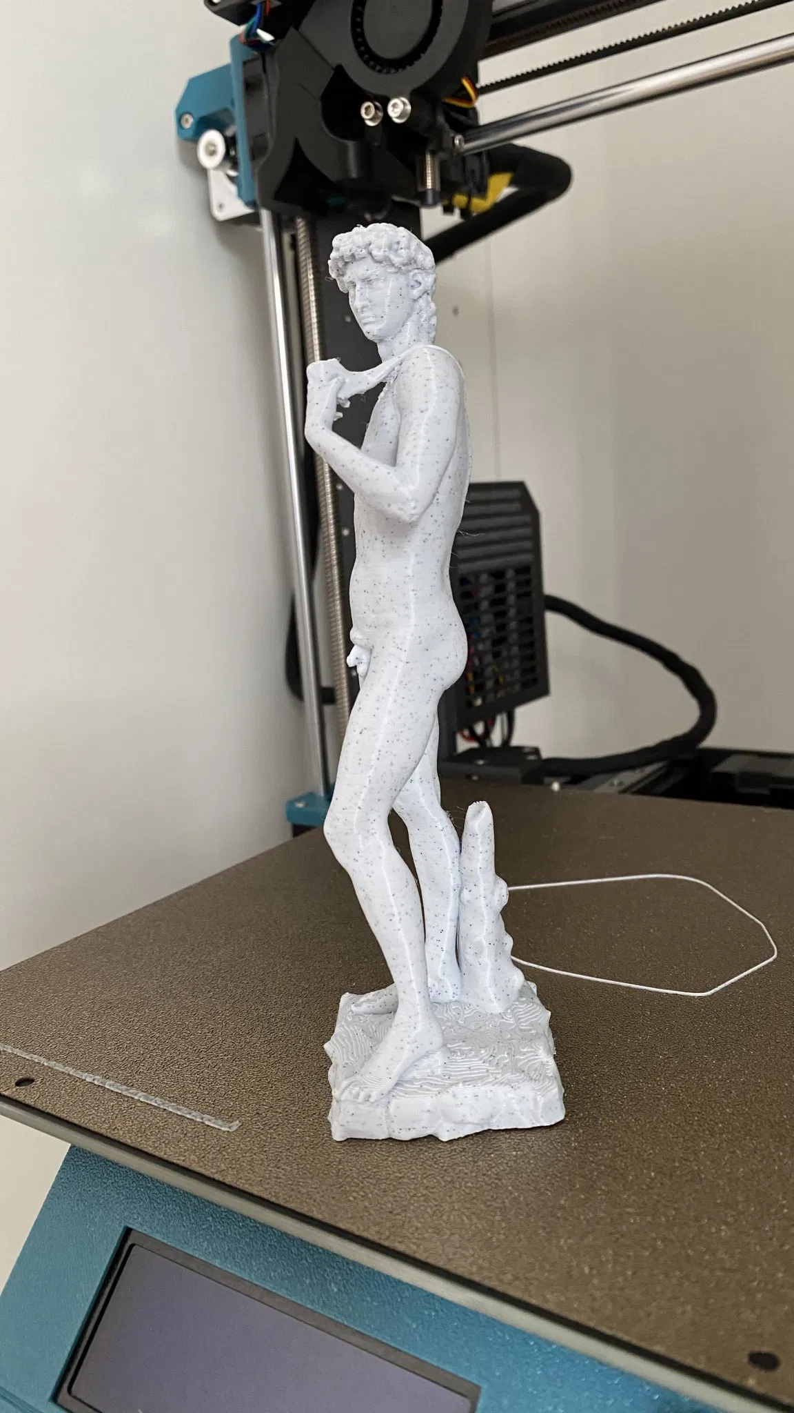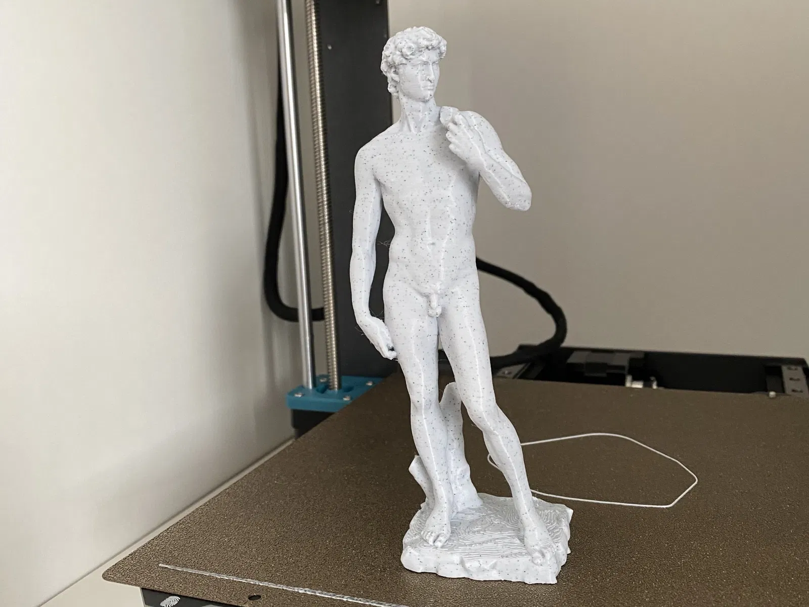 Mô hình Michelangelo được in với chân đế kiểu hữu cơ. Chất liệu in là GST 3D Marble PLA với độ cao lớp 0.20mm. Tối ưu hóa cài đặt nhiệt độ đầu phun và mâm nhiệt để đạt kết quả tốt nhất.