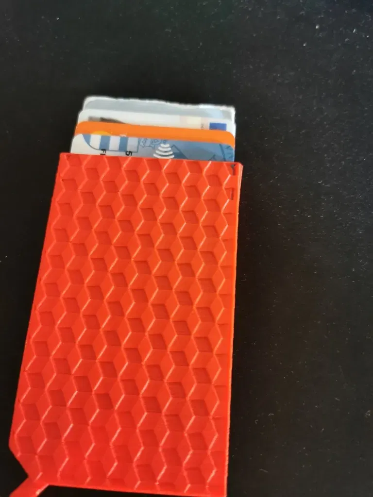 Ví chỉ đựng thẻ, có phiên bản trơn và hai họa tiết hình học. Lúc đăng lên mình chưa có hình thật vì mình xài cái mình đã in, mà cái này được đánh dấu là bản remix. Tương lai mình muốn làm cái khác, tại thẻ mình bỏ vô nó không có chắc, do lúc in sợi nhựa mình nó không được tốt lắm, sống ở thành phố mà độ ẩm cao thì biết sao rồi đó. Ban đầu mình có cất sợi nhựa trong túi hút chân không với gói hút ẩm, mà mình ngán cái vụ phải lấy ra lấy vô hoài, làm sai bét. Còn mấy bạn thì nhớ lấy ra lấy vô nha, đừng để nó bị ẩm.