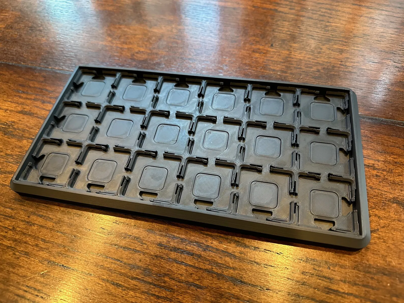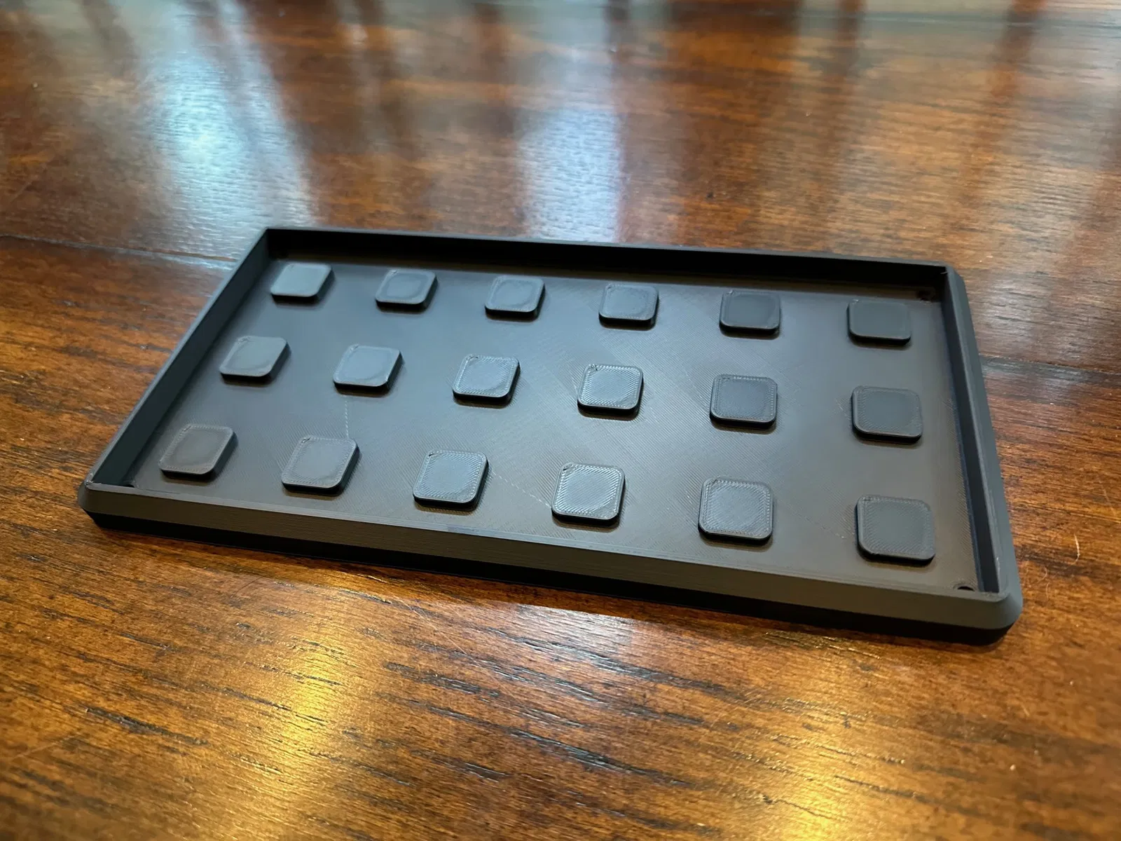 Dựa trên tên gọi của các bộ phận gốc, đây sẽ là thành phần kiểu ‘Khay’, và tôi đã làm mọi khía cạnh mà tôi có thể thành một tham số có thể chỉnh sửa đơn giản bởi người dùng. Bố cục lưới, độ dày của cơ sở, chiều cao và chiều rộng của viền, độ lệch dung sai và kích thước hình vuông định vị để thích ứng với hầu như bất kỳ thiết lập và hiệu chuẩn máy in nào…
