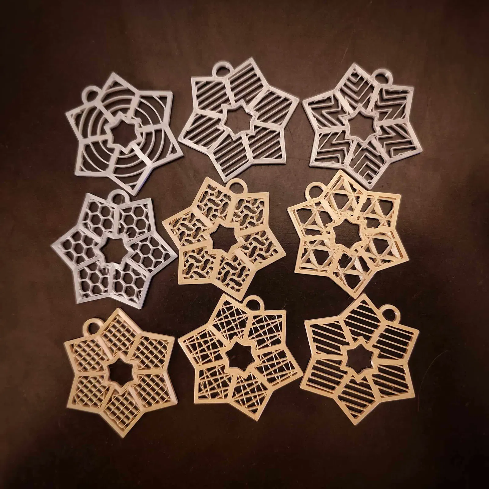 Móc Trang Trí Giáng Sinh với infill tùy thích. Hình dạng infill có thể tùy biến tự do, có loại nhìn đẹp, có loại nhìn không được đẹp lắm. Sử dụng khối âm hoặc khối dương được chỉnh sửa, hoặc tệp 3MF đã thêm.