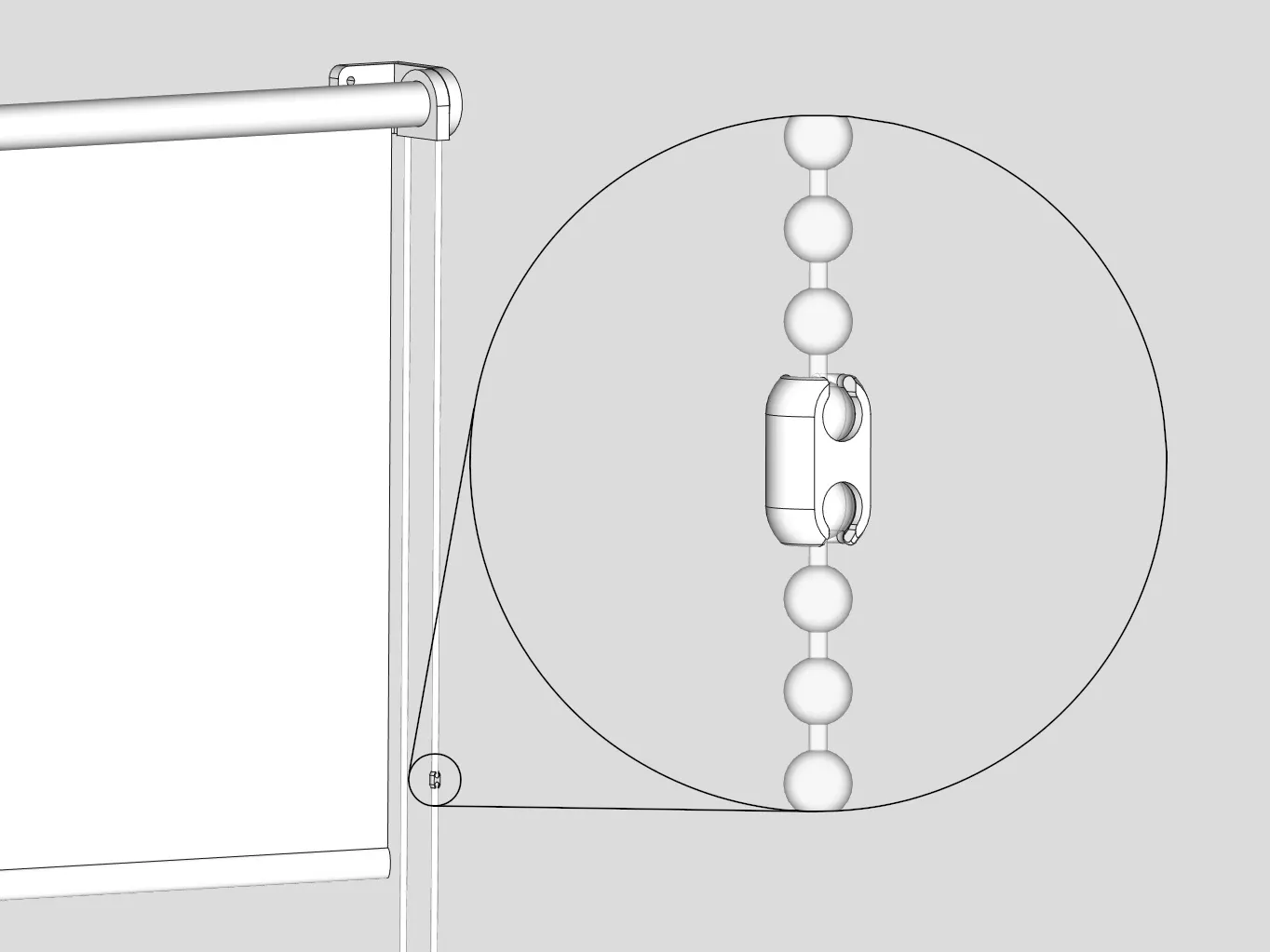 Mô hình khớp nối thay thế một mảnh đơn giản cho dây bi dùng trong rèm cuộn (ví dụ: rèm Jysk đời cũ). Được thiết kế cho đường kính bi khoảng ~4.5mm.