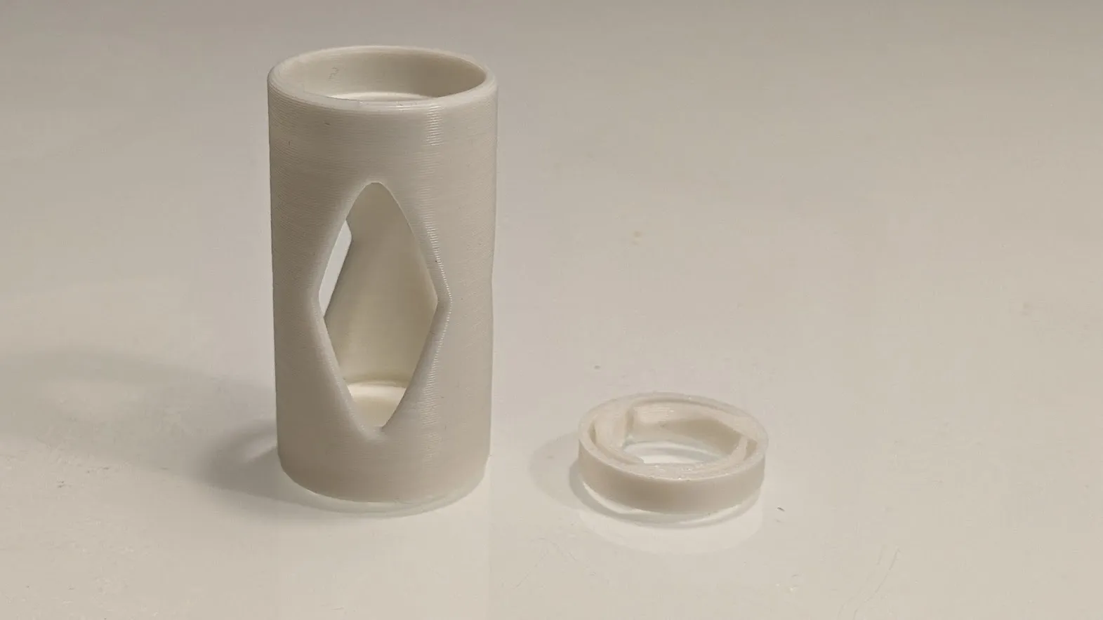 Tui vẽ lại phần thân và ghép nó với cái vòng giữ phía dưới. Nhờ vậy mà in không cần hỗ trợ luôn đó.