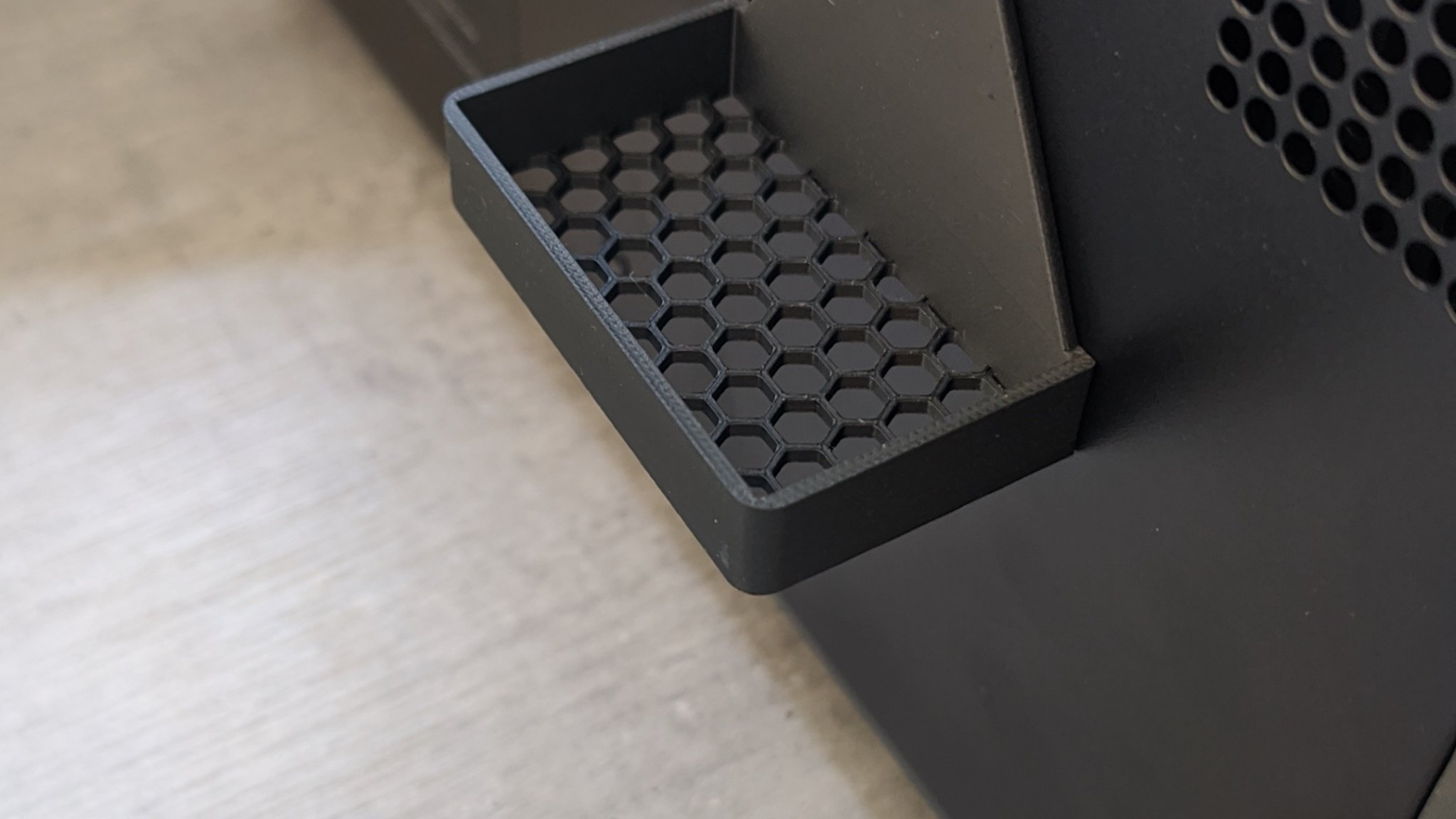 The Poop Chute Bucket is a practical design meant to catch filament waste during printing preparations. It's designed to attach to the lower screw of your printer's chute and includes a removable bucket for easy waste disposal. I kept it as low profile as possible, so it isn't in the way when placed near a wall.
