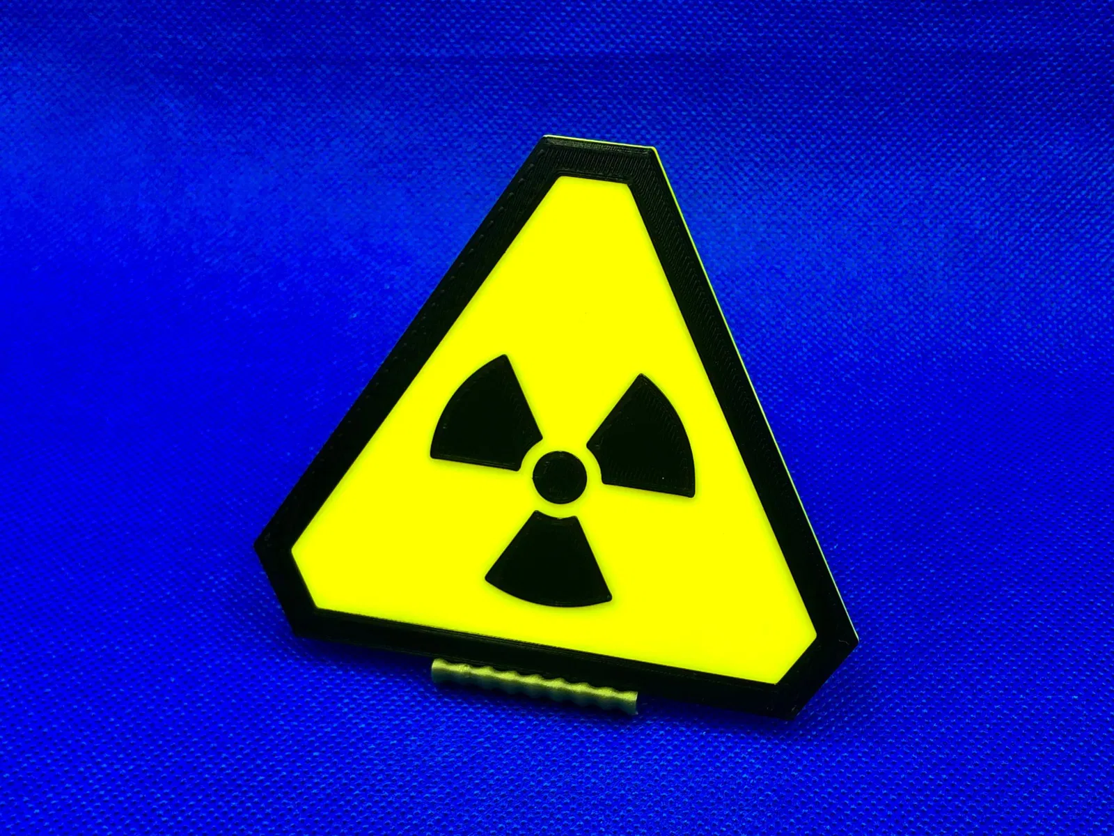Biển báo cảnh báo phóng xạ, được thiết kế để in với việc đổi màu giữa chừng. Cài đặt in đề xuất bao gồm độ dày lớp 0.2mm, lòng trong 20% gyroid và 2 chu vi. Đổi màu ở giữa bản in, sau phần đế chính.