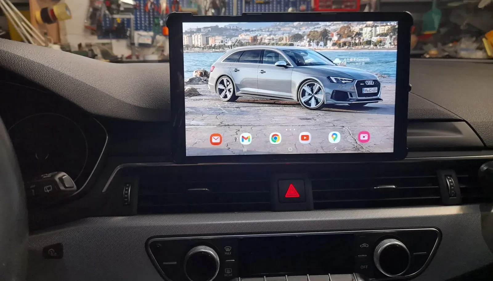 Giá đỡ máy tính bảng, lắp vừa khít phía trước màn hình ô tô, không cần chỉnh sửa gì. Giải pháp tiện lợi và an toàn để sử dụng máy tính bảng trên xe Audi A4 B9.