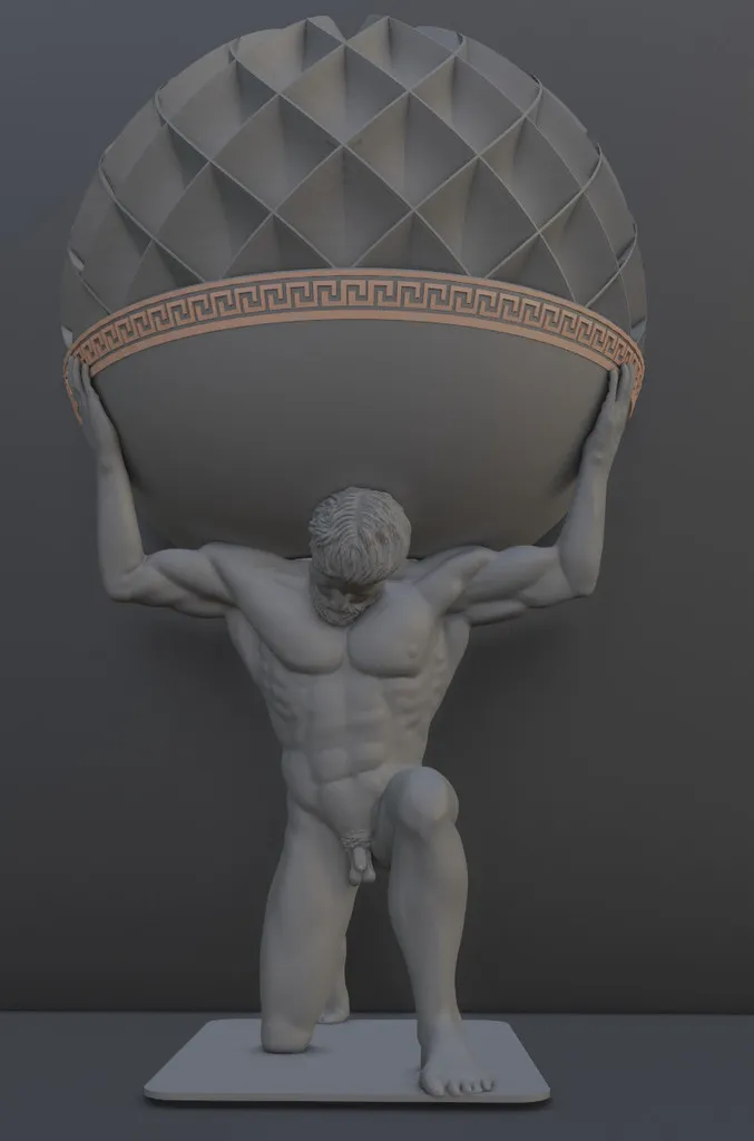 A sculpt of Atlas with a cutout for a lightbulb. This is 'Version 2', the first one can be found here: