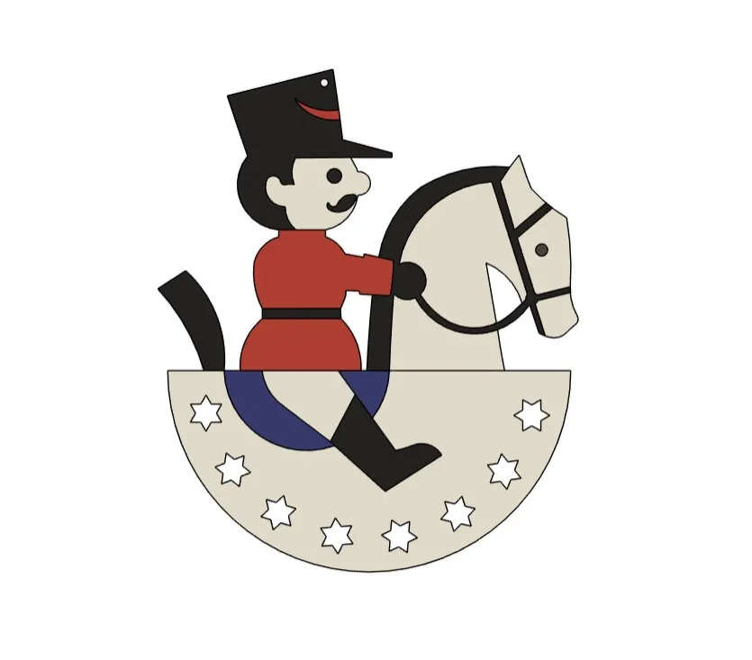 Die beiden Teile können zusammengefügt werden, so dass es beidseitig farbig ist. Es ist auch ein kleines Loch vorhanden, um das Reiterlein mit einem Faden zu versehen.