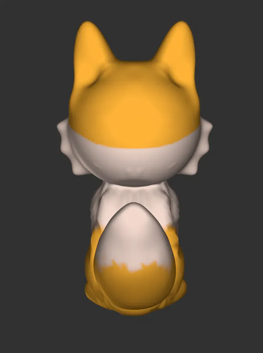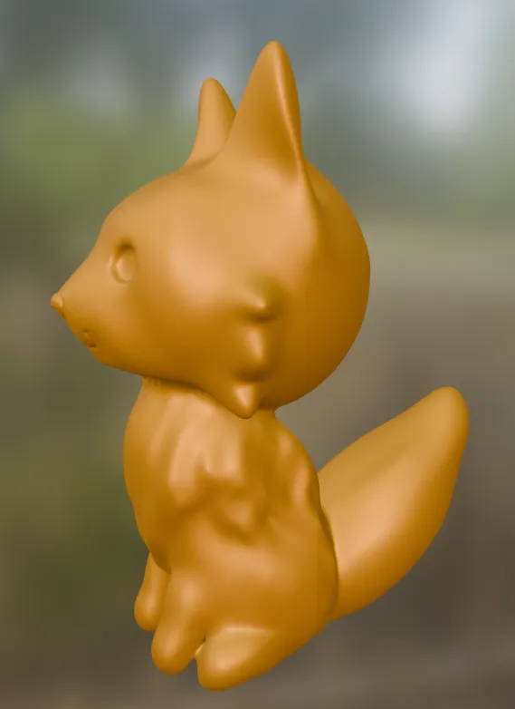 Mô hình cáo phong cách chibi, ban đầu được tạo bằng Nomad Sculpt rồi được tối ưu hóa và chỉnh sửa trong Blender.