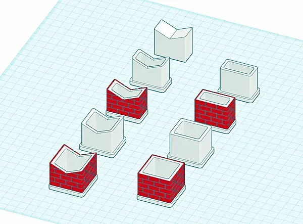 The models print upside down, and do not need any supports. I printed mine in Bambu Labs Basic PLA Crimson Red Sparkle (that was the closest color that I had to brick or brown wood – who doesn't like a sparkly chimney, especially at Christmas time :D ).