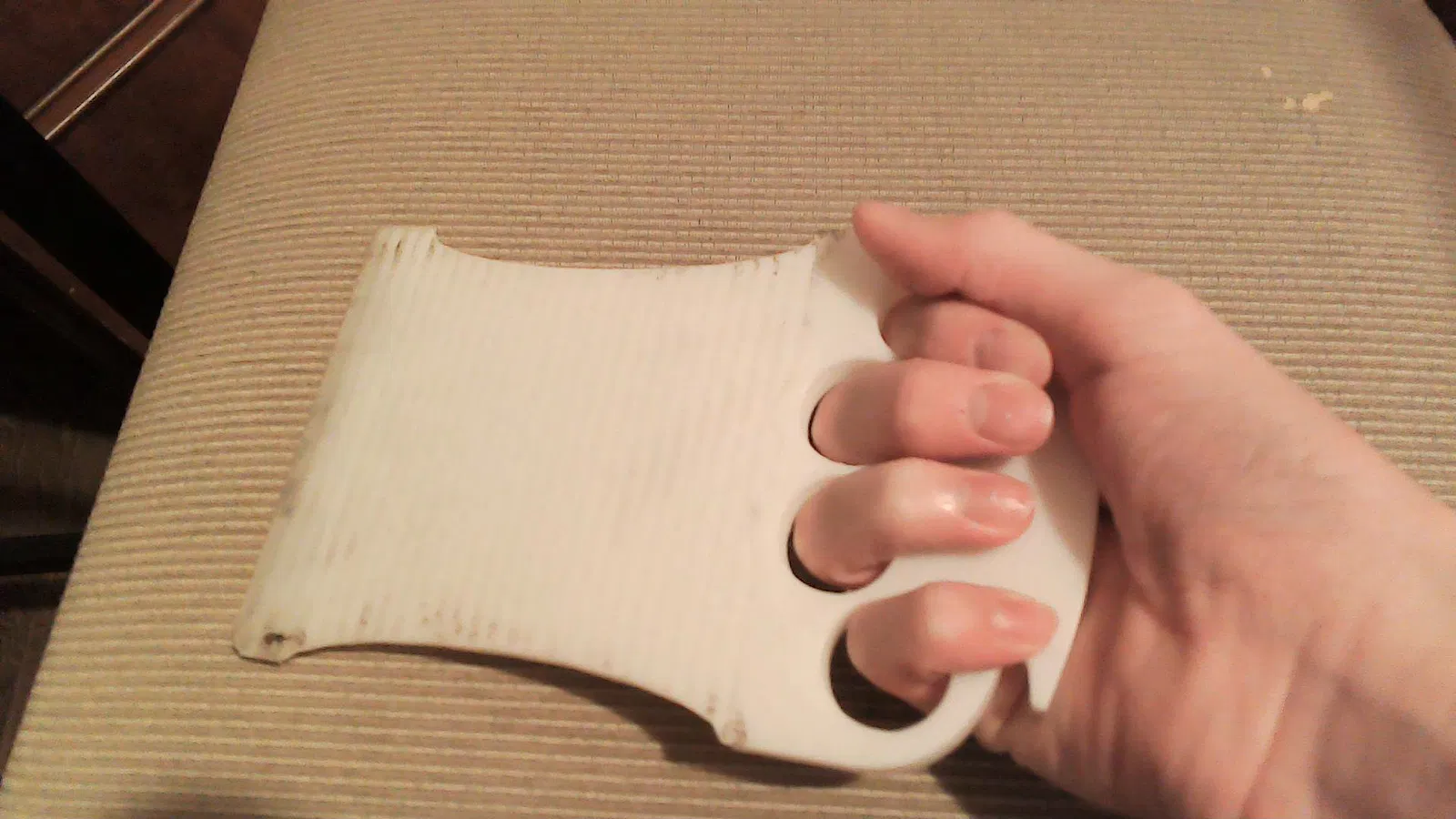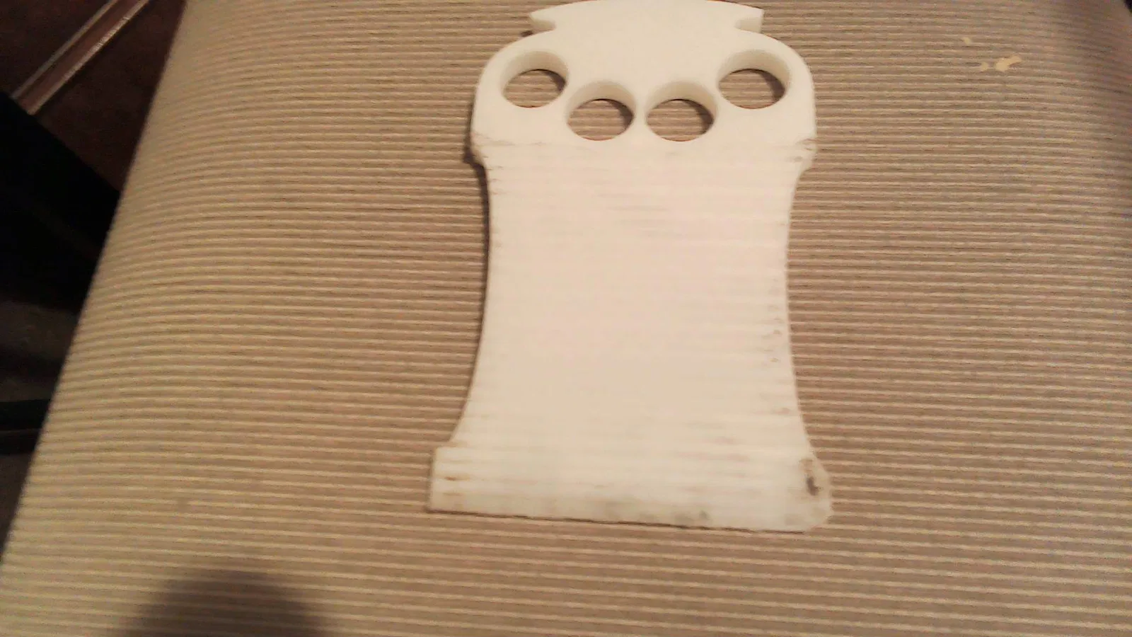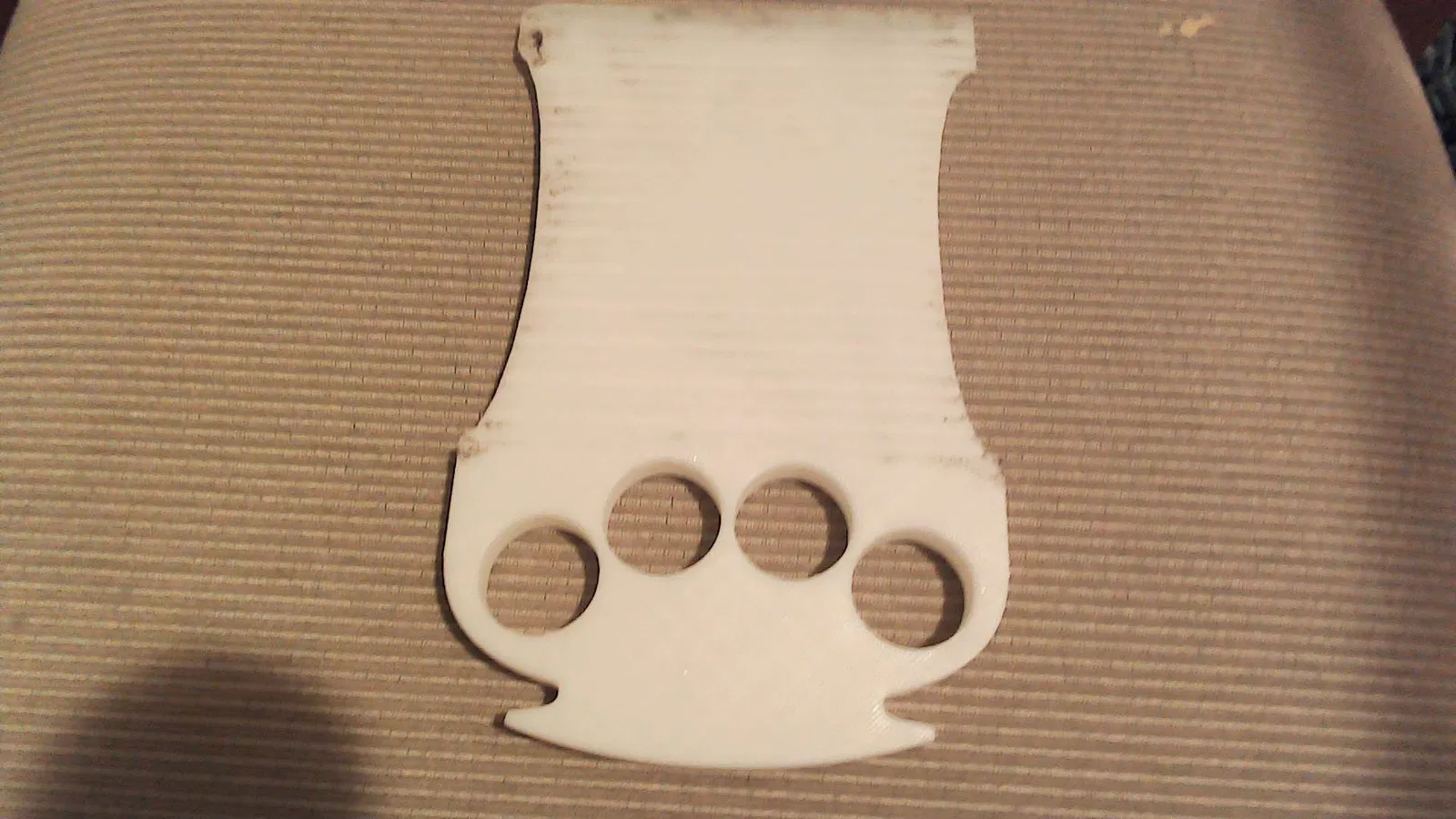 Tao in trên nhựa PLA trắng, nhưng mà xài cái gì cũng được hết trơn á. Tao khuyên mày nên để cái mặt phẳng của cái lưỡi cạo sát xuống bàn in, còn phần gù thì xài support. Tao in cái gù úp xuống bàn là không có ổn lắm đâu, tuy vẫn cạo băng tốt nhưng mà phần úp xuống có nhiều chỗ bị rỗ do support á mày.