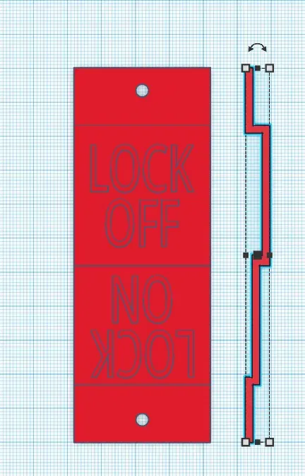 Có 2 file, một file có chữ và một file không có chữ. Cái này dùng để khóa công tắc đèn Decora ở vị trí TẮT hoặc BẬT, sử dụng các lỗ trên nắp chụp công tắc.