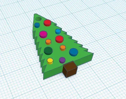 A festive Christmas tree pendant! This would be great to print with a multicolor printer, but you could also just paint the ornaments and the stump afterwards.