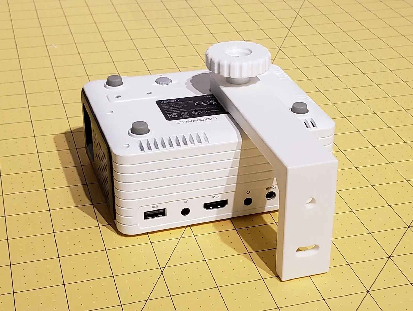 Cách dễ dàng để gắn máy chiếu Yoton từ trần nhà, hướng xuống dưới để có thể dùng để cắt rập may. 2 lỗ vít và núm xoay cho phép bạn điều chỉnh máy chiếu cho phù hợp với bàn cắt của mình. Tôi đã gắn cái của mình vào trần thạch cao bằng nở nhựa.