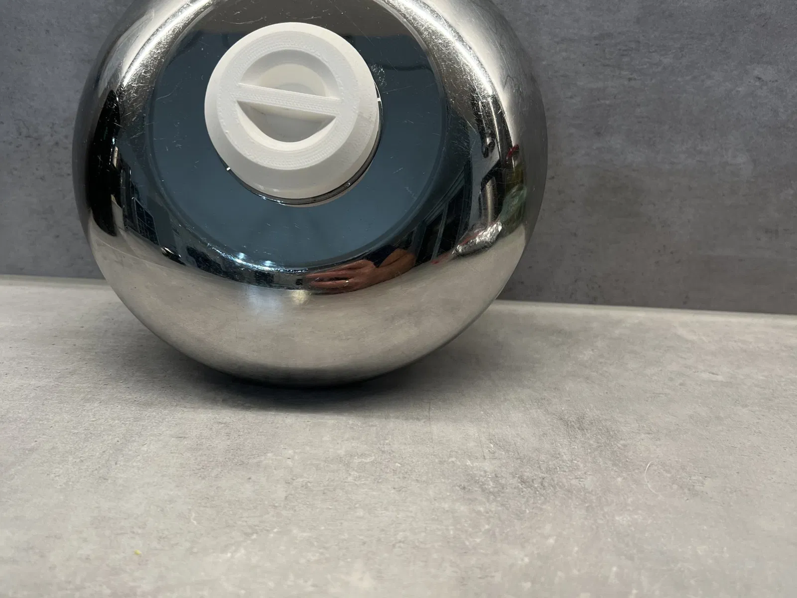 Cái núm này là núm thay thế cho núm Visiotherm của nồi AMC á. Tui làm cái mẫu này để có thể tiết kiệm không gian khi để nồi có nắp vô tủ lạnh hay là để ở ban công hay ngoài sân thượng. Do có tiếp xúc với thực phẩm nên tui đề xuất in bằng vật liệu phù hợp nha. Không khuyến khích sử dụng lúc đang nấu nướng đâu.
