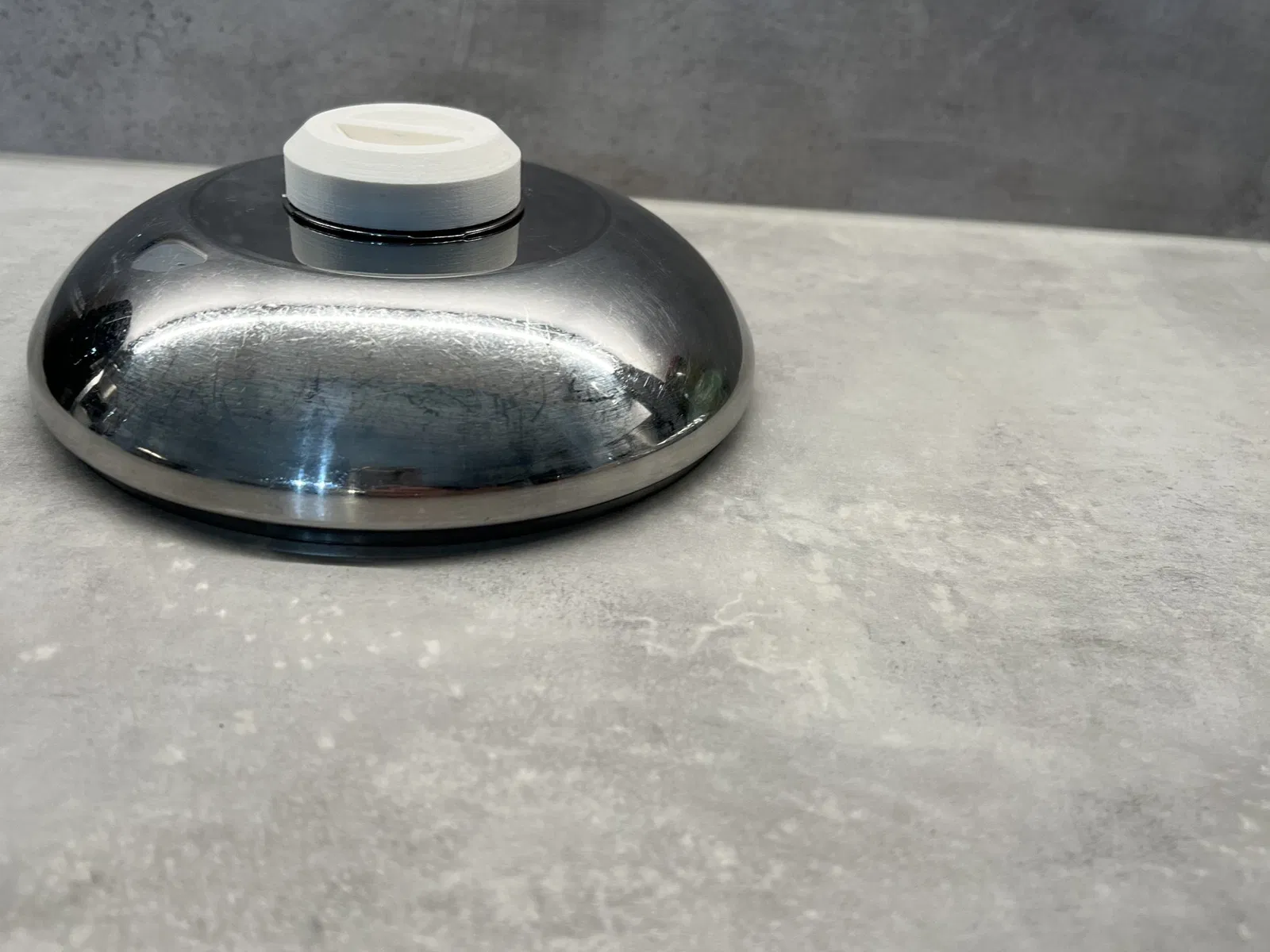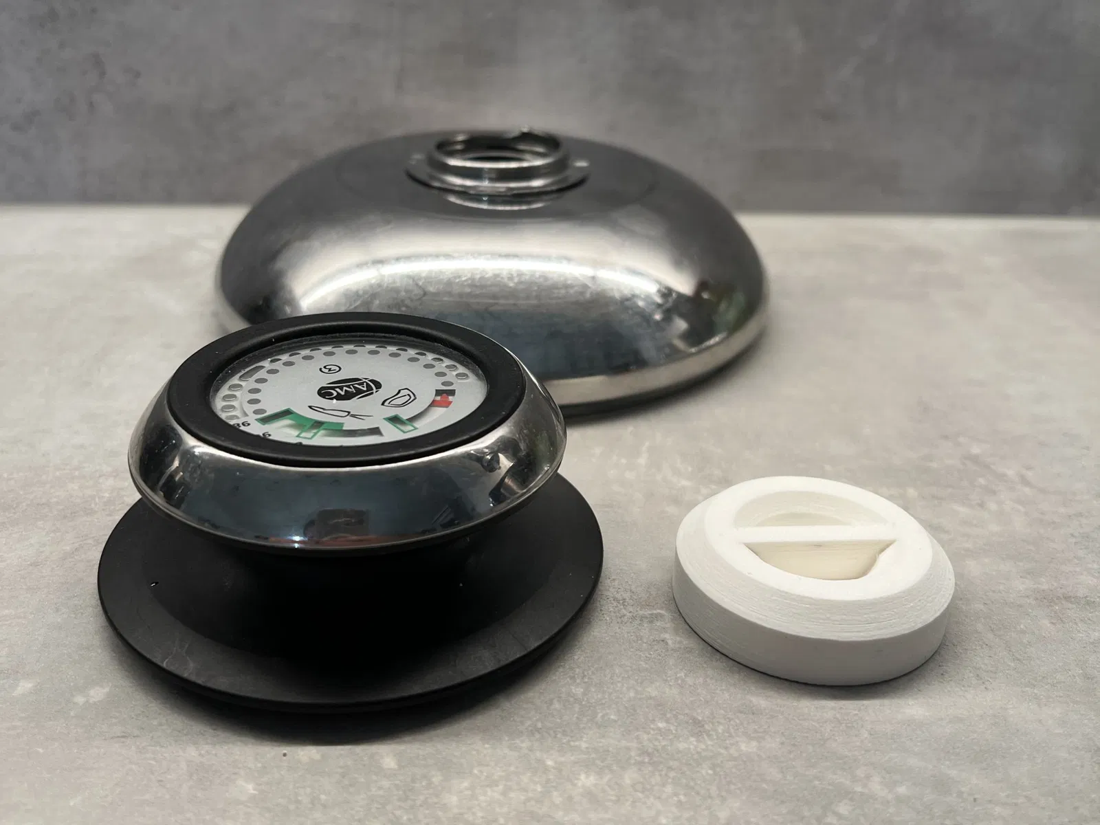 Đây là núm thay thế cho núm Visiotherm của nồi AMC. Cái núm này giúp bạn tiết kiệm không gian khi cất giữ nồi có nắp trong tủ lạnh hoặc để ngoài ban công, sân thượng. Đề xuất in bằng vật liệu an toàn cho thực phẩm, không dùng khi nấu nướng.