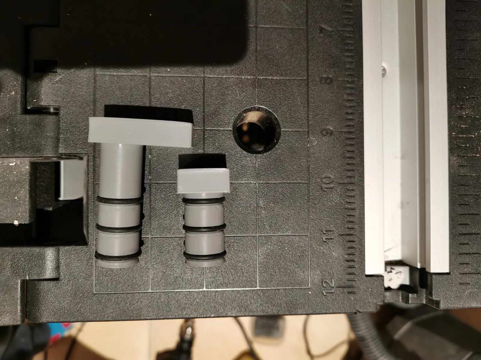 Một bộ ba kẹp cho bàn gấp Worx sử dụng các vòng niêm phong cho vừa vặn hơn trong các lỗ kẹp