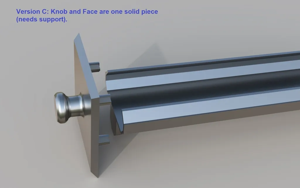 3- Phiên bản C: Nút và mặt là 1 khối rắn yêu cầu hỗ trợ để in. Tôi khuyên bạn nên sử dụng hỗ trợ dạng cây vì nó thường để lại ít vết sẹo trên bề mặt.