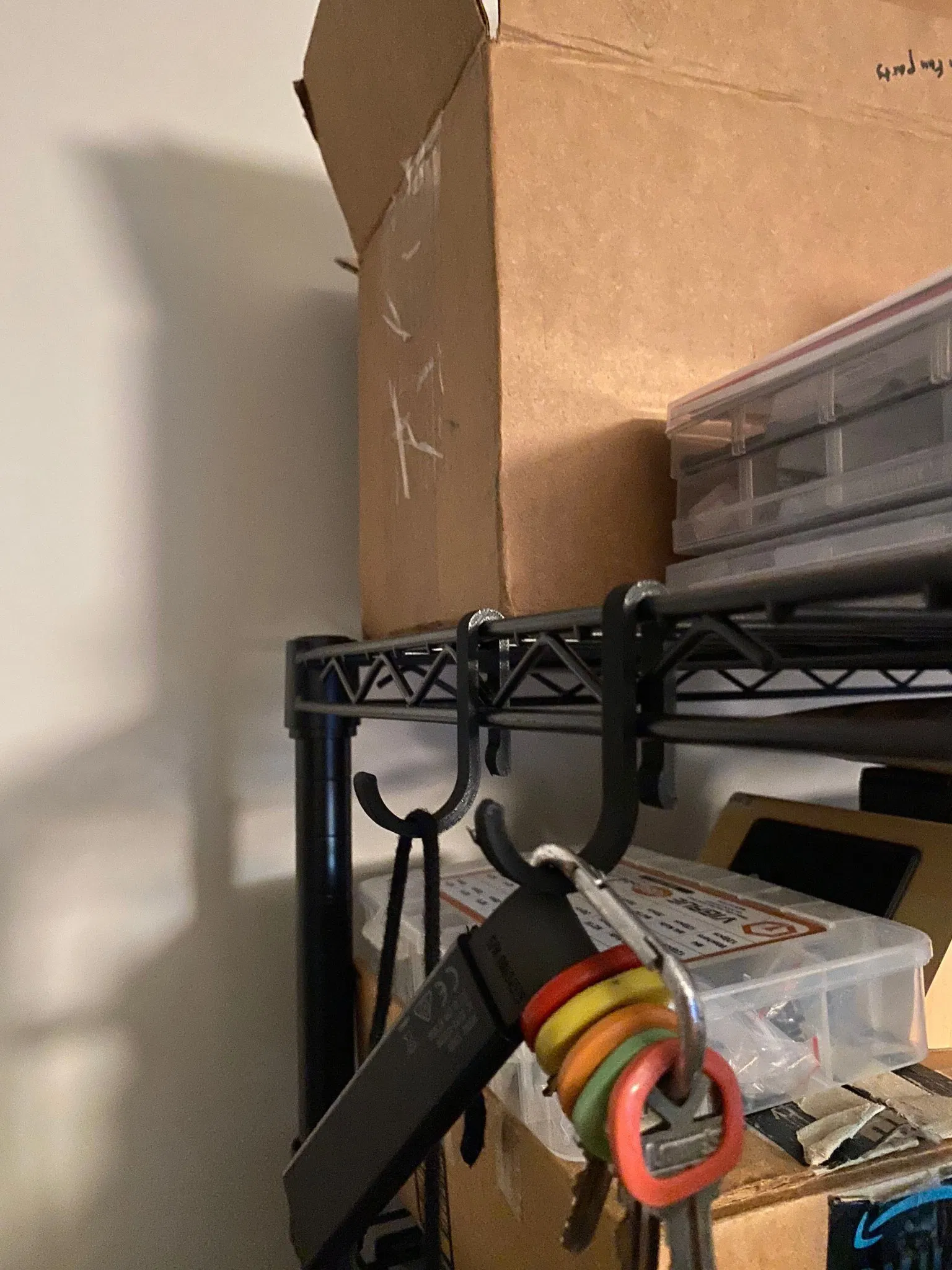 Móc treo đồ hình chữ J đơn giản, nhẹ nhàng để treo mũ, chìa khóa, dây đeo và các vật dụng khác lên kệ kim loại tiêu chuẩn của Sam's Club/Costco/Home Depot.