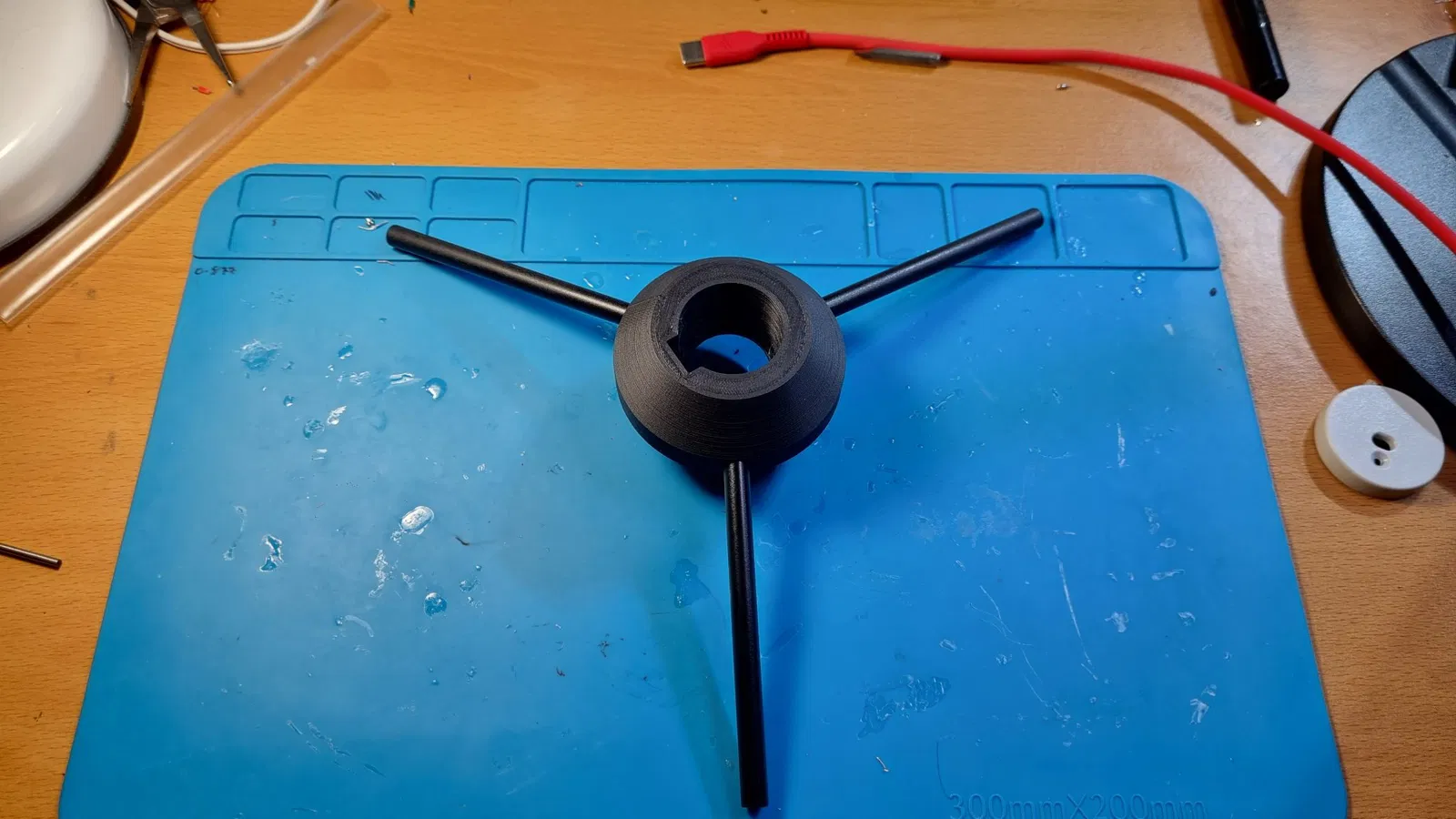 Mô hình này yêu cầu lắp đặt các thanh có đường kính 6.3mm làm chân. Tôi đã sử dụng thanh tròn bằng nhôm, mặc dù trọng lượng của thép có lẽ sẽ tăng thêm độ ổn định.