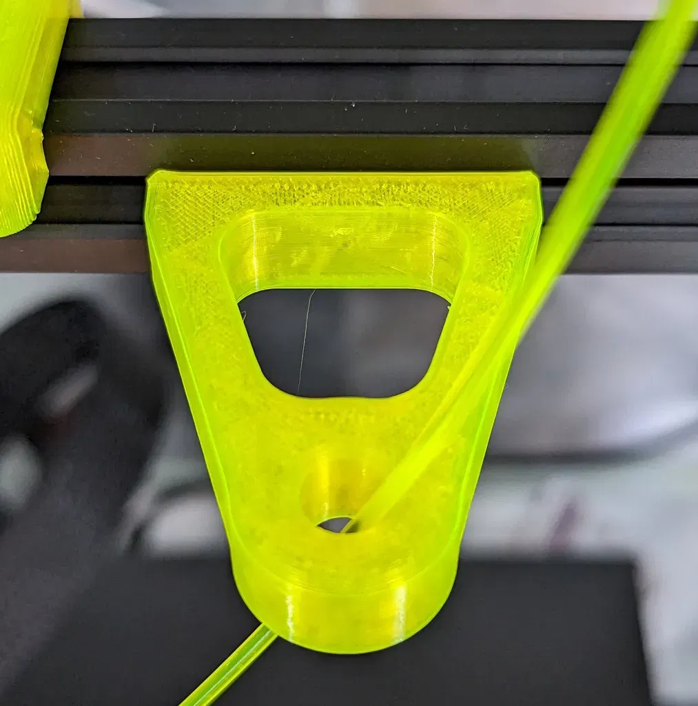 Tui đã làm lại ý tưởng của mẫu gốc để loại bỏ phần support và các bộ phận thêm vào (ống PTFE). Đây là mẫu dẫn hướng sợi nhựa cho máy in 3D Ender-3 v2, sử dụng nhựa PETG với cài đặt in cơ bản.