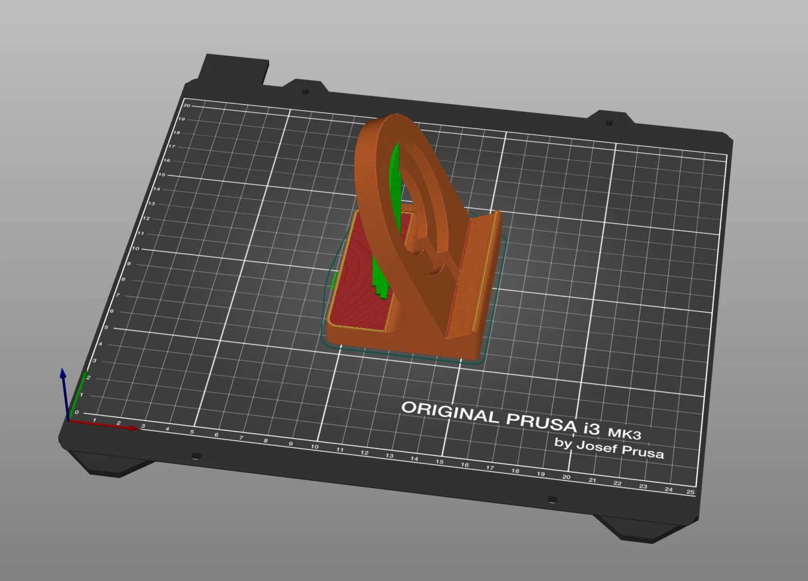 Giá đỡ được in 3D theo hướng mà nó sẽ được đặt trên bàn đầu giường, với các cấu trúc hỗ trợ được kích hoạt xuyên suốt. Các cài đặt in được khuyến nghị bao gồm chiều cao lớp là 0.10mm cho chi tiết tinh xảo và mật độ lấp đầy 30%. Một cấu trúc hỗ trợ nhỏ được tạo ra ở phía sau của giá đỡ, giữ cho thiết kế đơn giản. Filament PLA đã được sử dụng cho phiên bản chính.