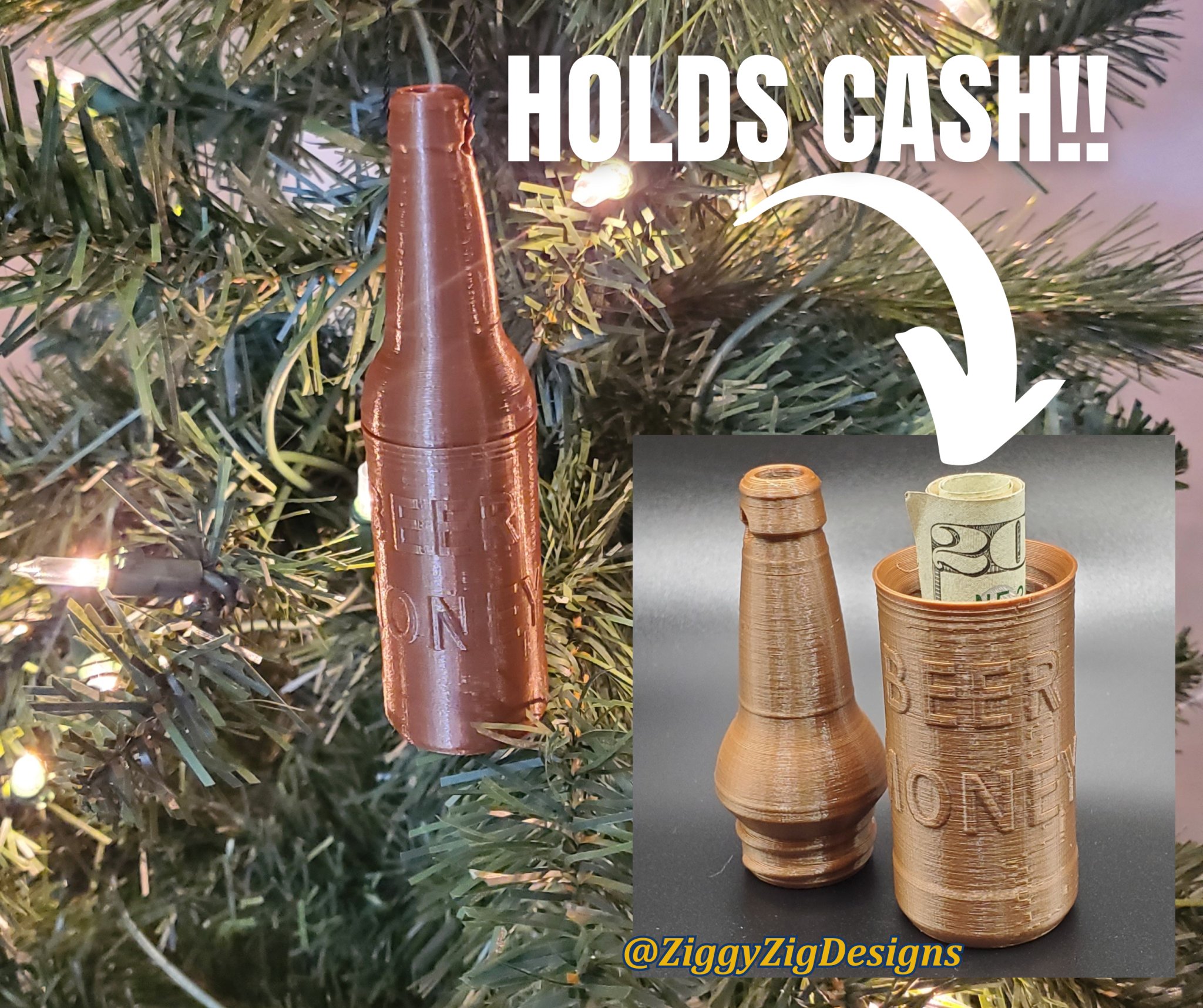 This beer money ornament is the perfect way for you to gift cash to your loved one every year! Buy it for that person in your life who spends too much (or not enough) money on beer. Makes for a great Christmas gag gift, stocking stuffer, or white elephant gift!