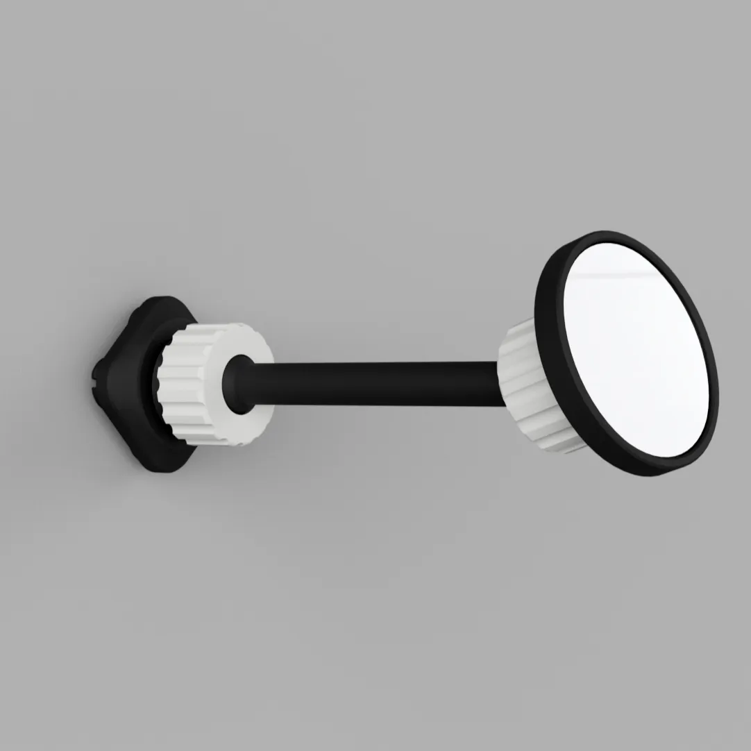 Thiết kế để vừa với gương đường kính 51mm (khoảng ½ inch), bạn cần dán gương vào đế giữ bằng keo hai mặt hoặc thứ gì đó tương tự.