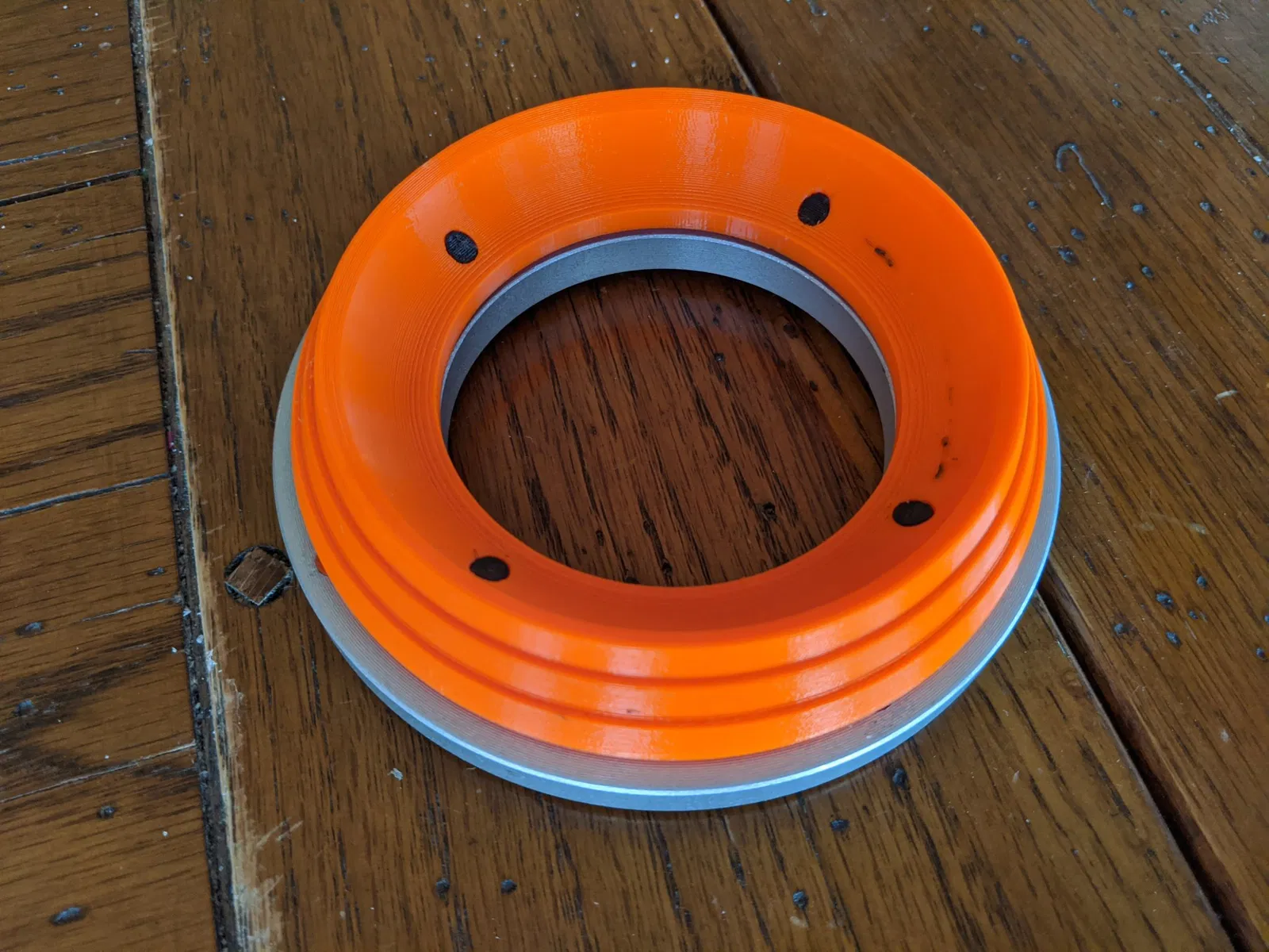Cốc bóng/vòng được in bằng prusament petg với khoảng 15% độ đặc và không thêm lớp vỏ nào. Nhưng tôi có thể đã in nó mạnh mẽ hơn nhưng không phải là tôi đang thả bóng bowling lên nó.
