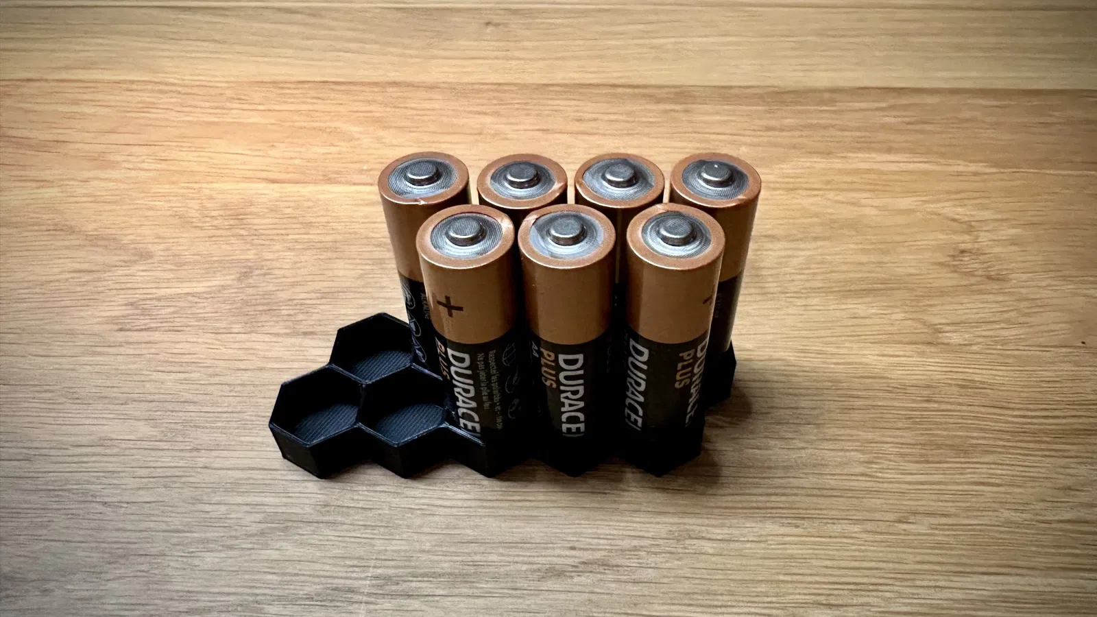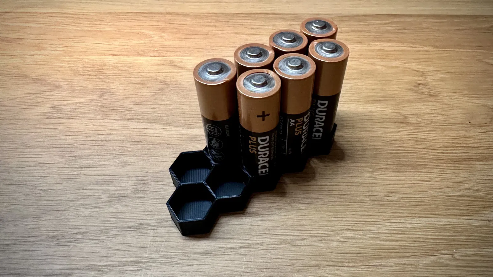 Hộp đựng pin AA tiết kiệm vật liệu với thiết kế tổ ong thông minh. Có nhiều phiên bản 10, 20, 30, 40 viên, yêu cầu ít PLA và in nhanh chóng. Thông số in: PLA, đầu phun 0.4mm, chiều cao lớp 0.2mm, không cần supports, góc đổ đầy 60°.