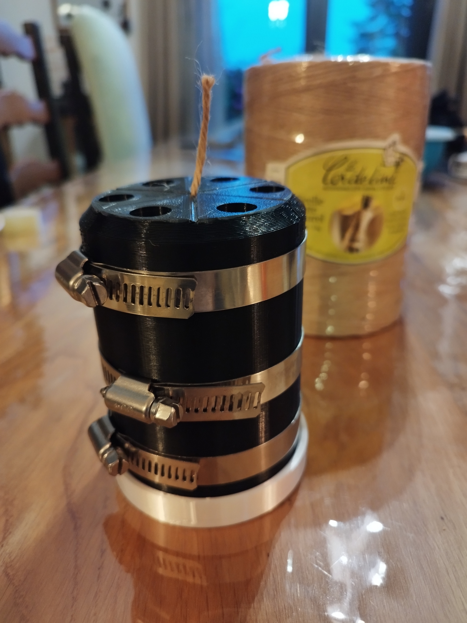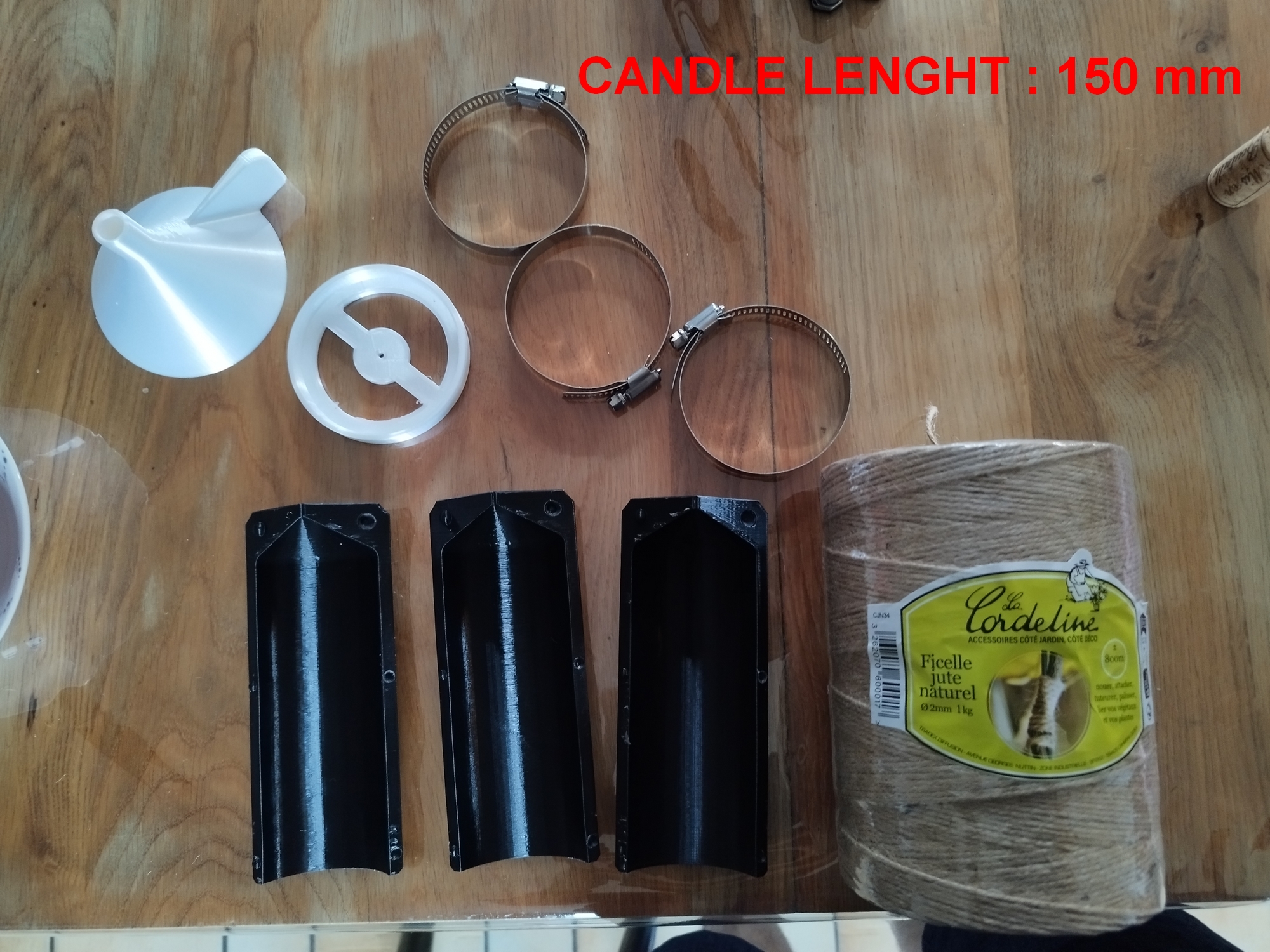 Khuôn nến đơn giản, dễ sử dụng. Chỉ cần kẹp, bấc và sáp paraffin. Đổ sáp ở nhiệt độ 60-70°C, chờ 12 tiếng để lấy nến. Phù hợp với bấc có đế dính.