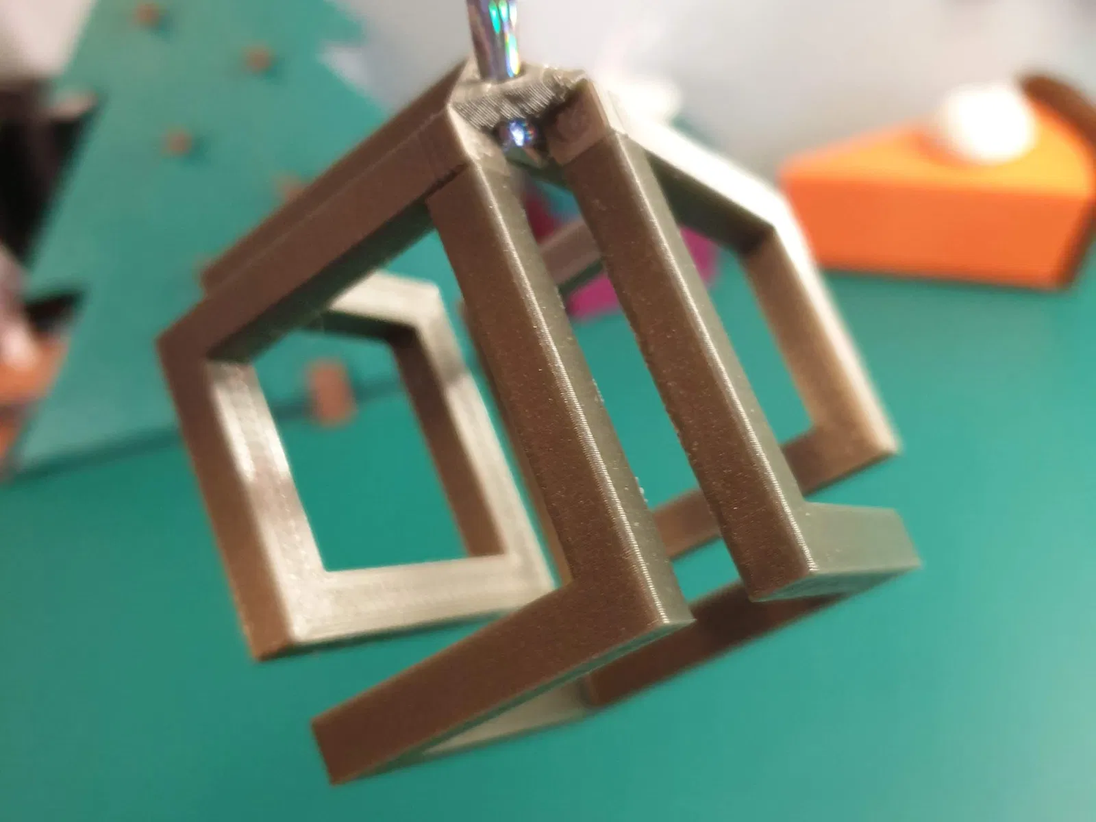 Phiên bản móc treo trang trí Giáng sinh của Illusion Cube V2. Nhỏ và mập hơn bản thường, có lỗ xỏ ruy băng. In không cần hỗ trợ, chỉ cần ráp lại. Có thể dùng keo để cố định.