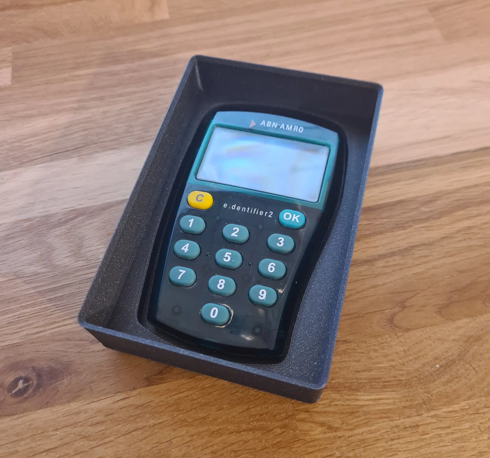 Cái này là cái hộp Gridfinity 2x3, cao 4U, có thể xếp chồng lên nhau, để đựng cái ABN AMRO e.dentifier2 nha mấy bạn. Cái này là thiết bị xác thực của ngân hàng Hà Lan đó.