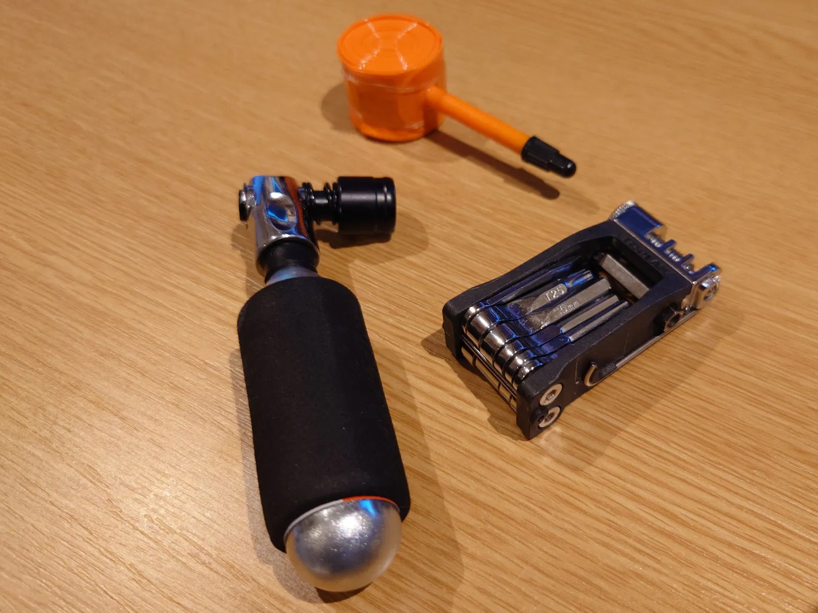 Đây là một cái túi đơn giản để đựng ba món đồ khẩn cấp cho xe đạp đường trường: