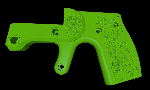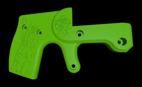 Mô hình Master Chief Harlot, một bản in súng ngắn với chi tiết khắc "ti" nổi bật. Khuyến khích in bằng màu xanh lá cây "Loyal Moses Sparkle Green" và làm nổi bật các chi tiết khắc. Vui lòng tham khảo thêm các tệp và hướng dẫn từ bản gốc "Harlot".