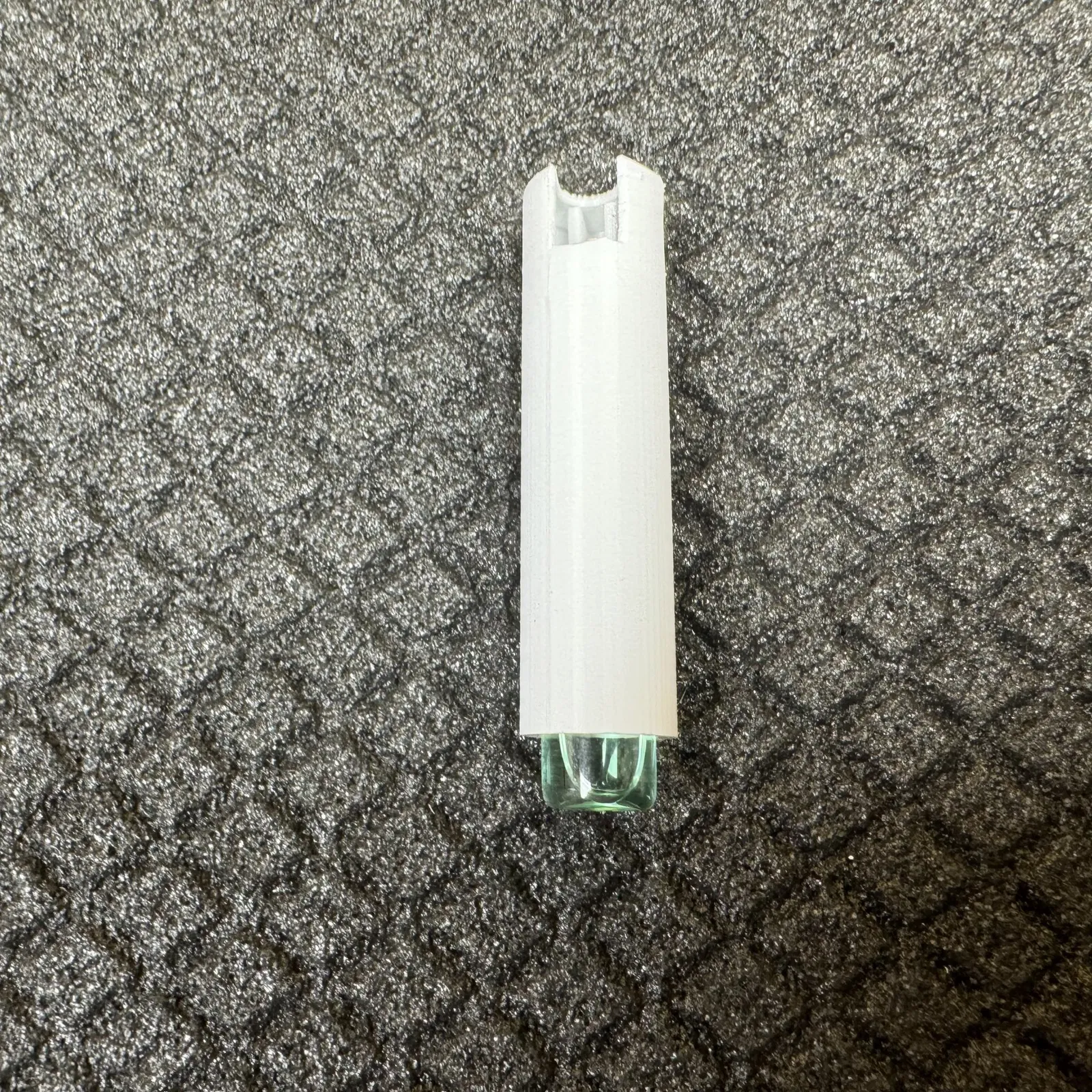 Pushing the glass in will break the top off in the right place without injury. Made for 11mm diameter size. For other glass sizes, use the resize in the slicer.