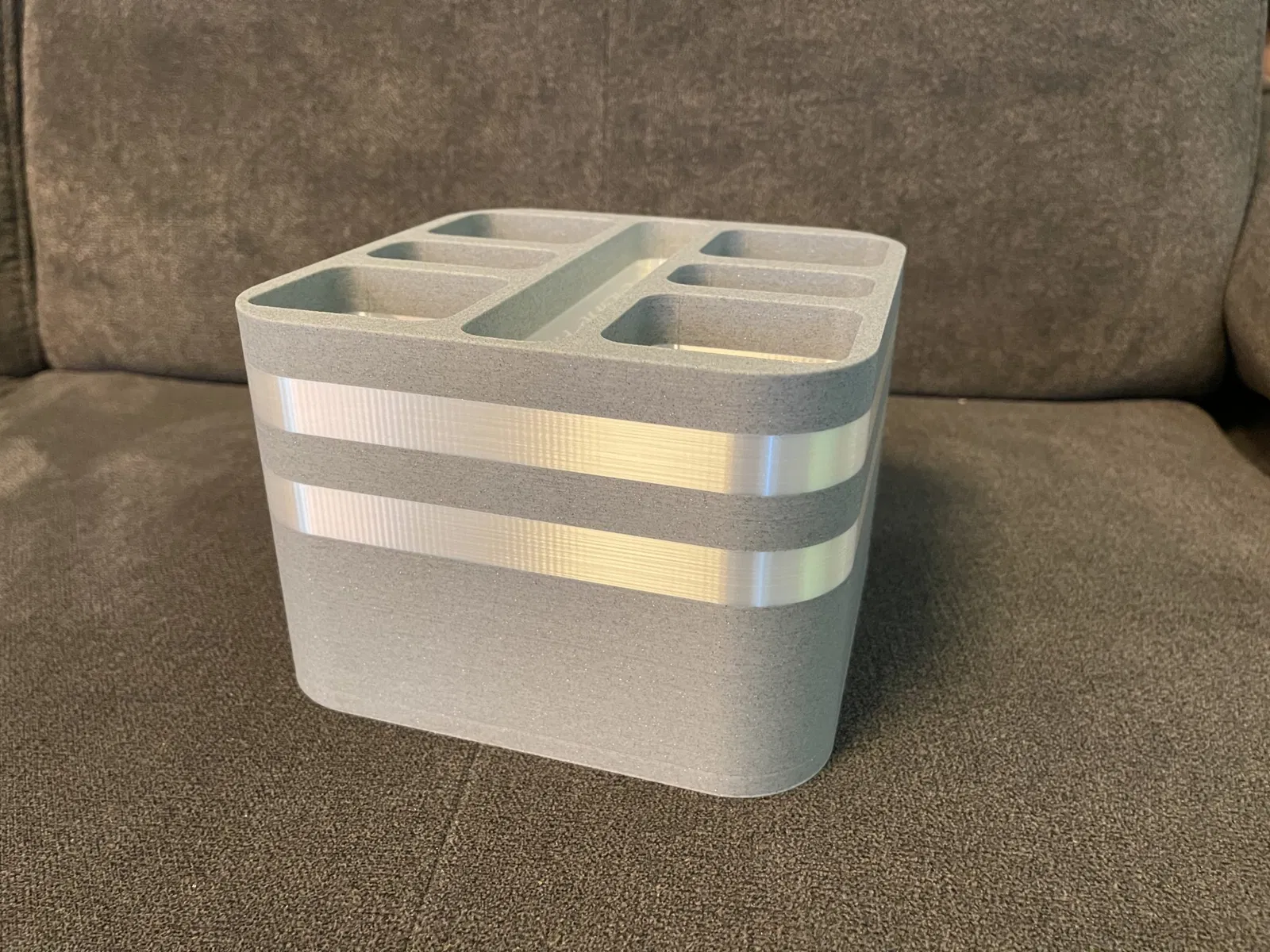 Chiếc giá đỡ remote này có thiết kế độc đáo, cho phép bạn in ngược để có bề mặt hoàn thiện tuyệt đẹp trên tấm PEI. Với tùy chỉnh lớp in 0.16mm, 3 đường thành, 5 lớp trên/dưới và 5% Gyroid, bạn có thể tạo ra một chân đế remote chắc chắn và thẩm mỹ. Ngay cả khi in một màu đơn giản, sản phẩm vẫn trông rất bắt mắt.