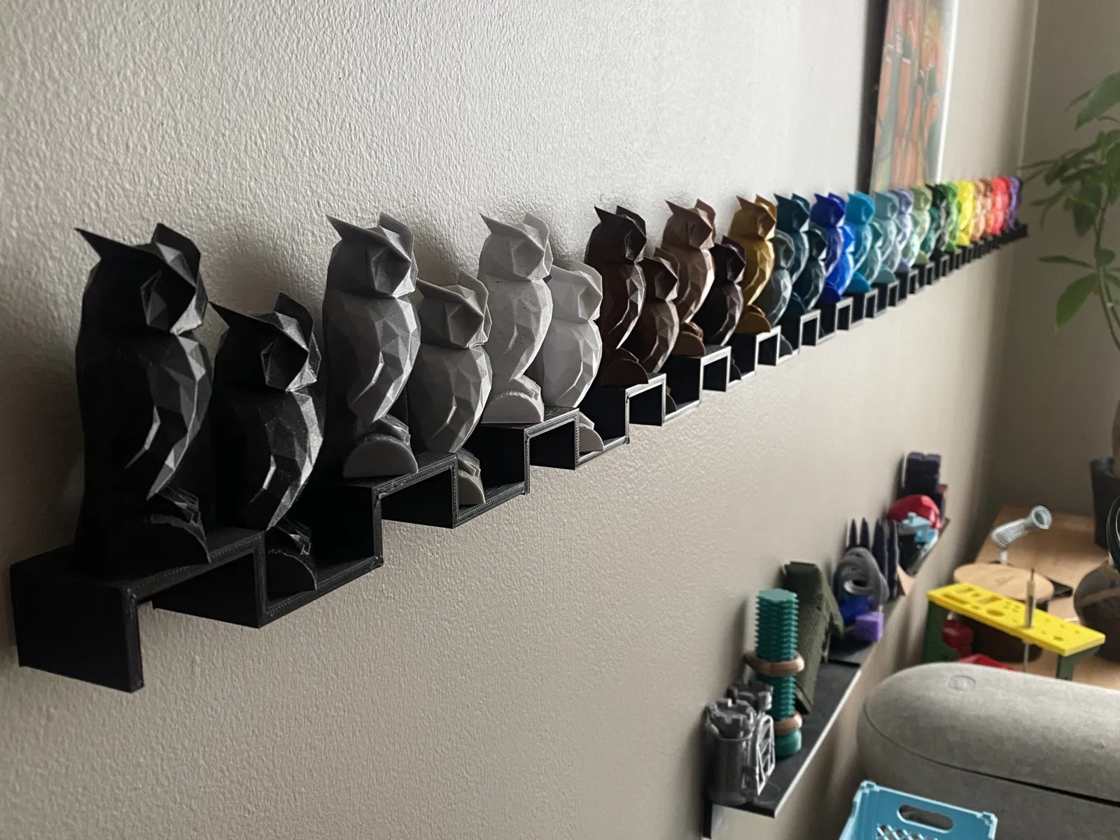 Kệ nhỏ xinh để trưng bày đồ vật tí hon, dán bằng miếng dán 3m command strips. Miếng dán sẽ được cắt đôi để vừa vặn, giúp bạn dễ dàng trang trí không gian nhỏ.