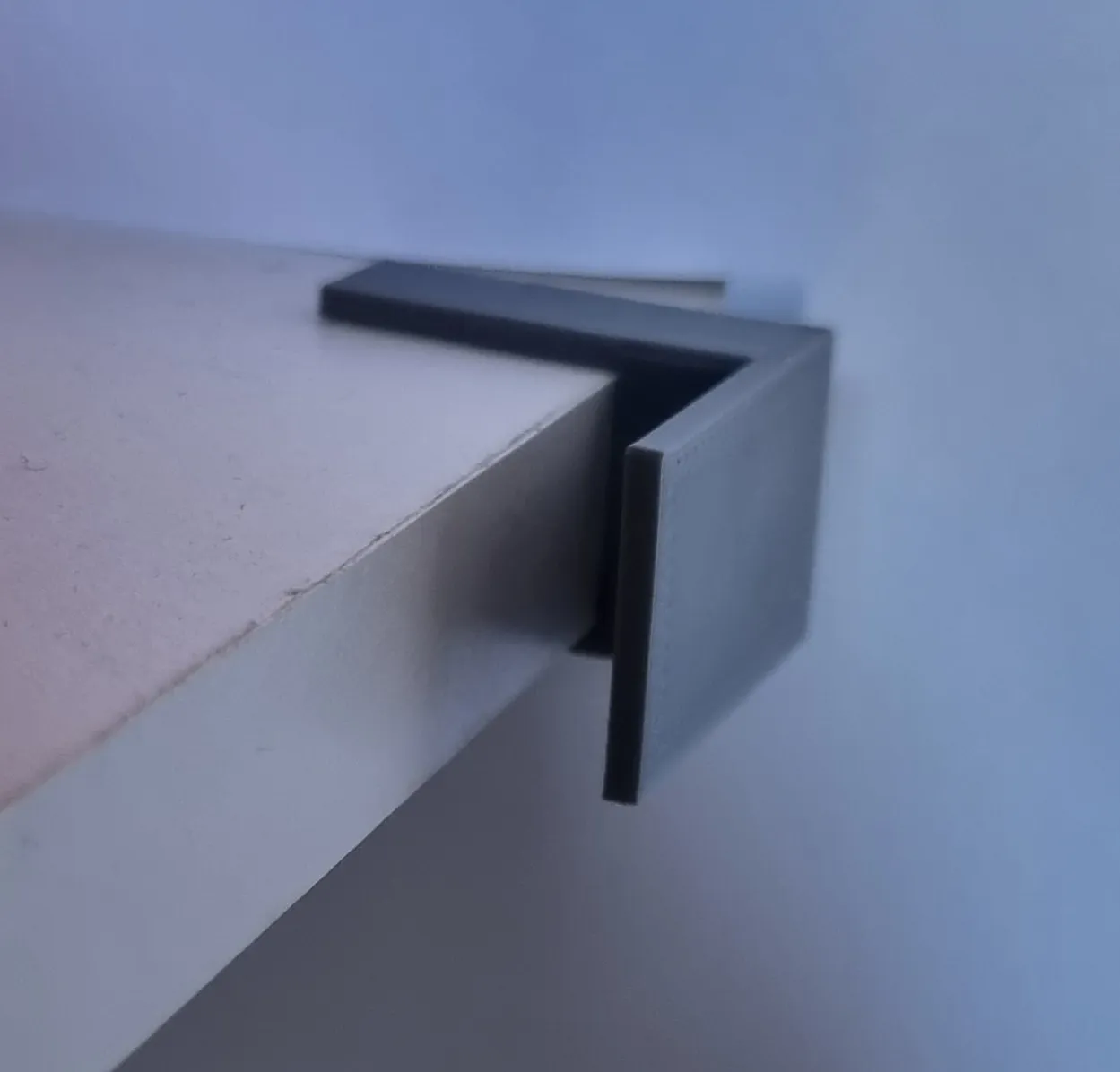 Cái kẹp kệ này có thể kẹp vào các mặt kệ dày 16mm, 19mm, hoặc 24mm (ví dụ như kệ IKEA Billy).