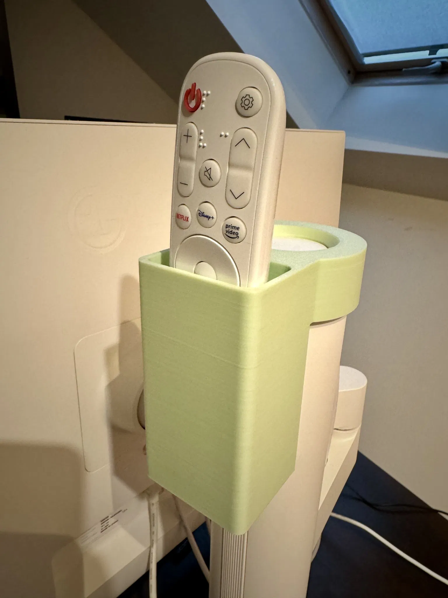 Bạn sẽ không bao giờ để quên remote nữa! Cái đế đơn giản này giúp bạn giữ remote điều khiển hoặc các vật dụng nhỏ khác, có khoét lỗ để luồn dây cáp. Phù hợp với màn hình LG và các chân đế khác.