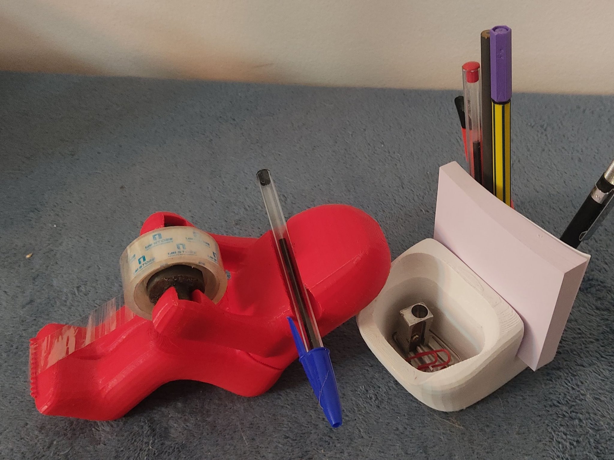 Với thiết kế tối giản đẹp mắt, phụ kiện bàn này có thể phù hợp ở hầu hết mọi nơi. Đừng để băng dính, kẹp giấy, bút và ghi chú dính chiếm không gian làm việc quý giá. Giá đỡ phụ kiện bàn đa năng này giữ ghi chú dính, băng dính, bút và kẹp giấy. Một nam châm nhỏ có thể được gắn ở phía sau để giữ kẹp giấy ở vị trí cố định cho việc lấy ra dễ dàng. Để làm điều này, thân của nó đã được làm thành hai phần cần được dán lại với nhau.