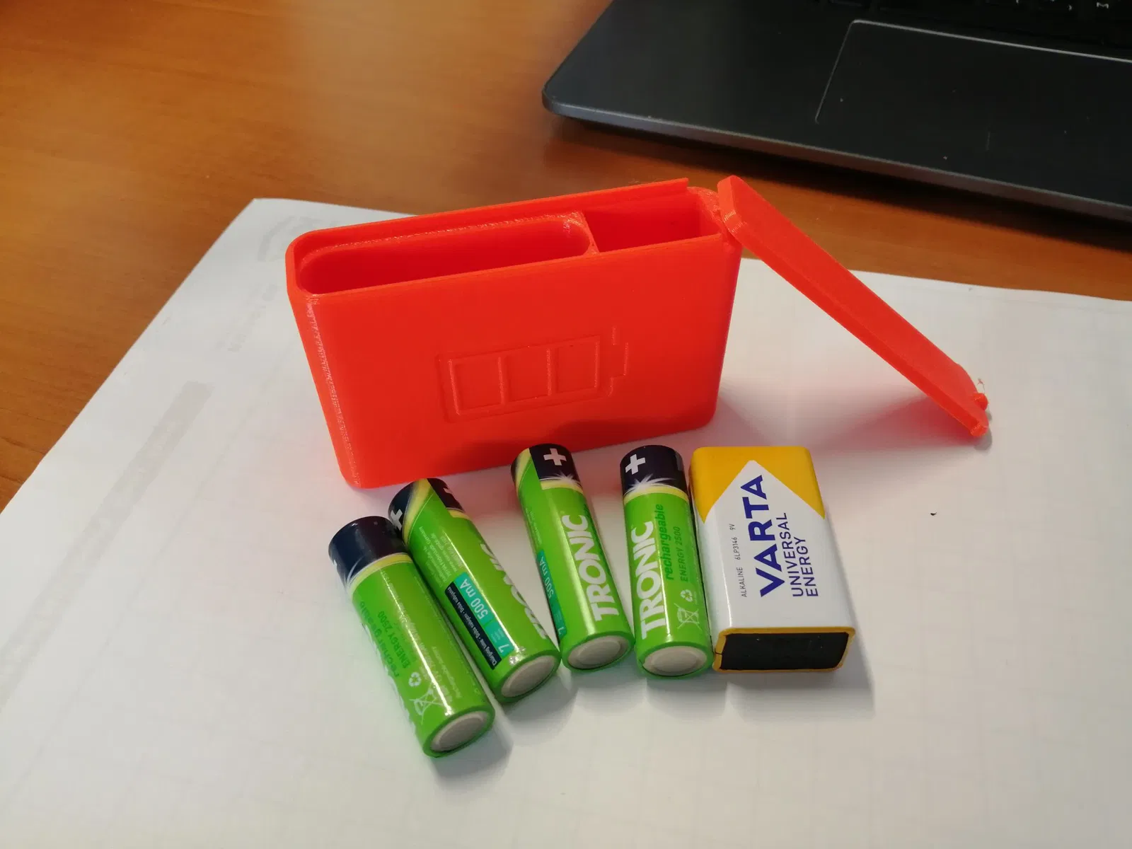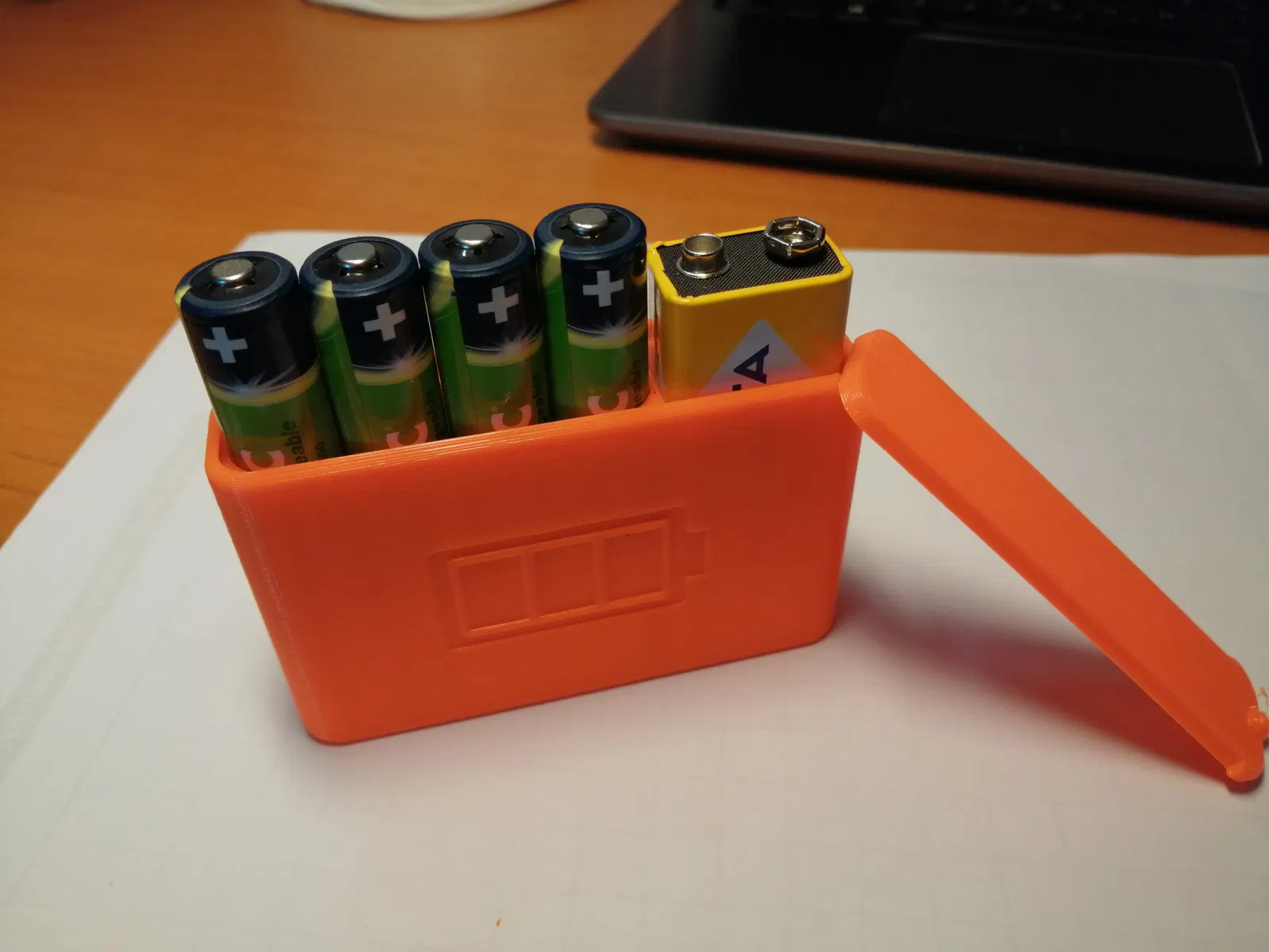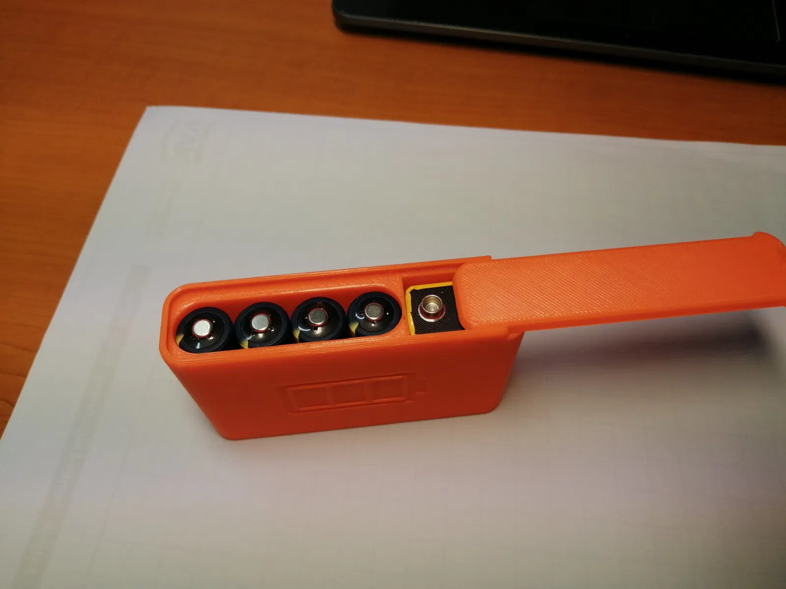 Đây là hộp đựng pin dự phòng cho 4 viên pin AA + 1 viên pin 9V, dùng cho máy dò kim loại Vanquish và máy dò tìm Profind. Bản thân thân hộp được in không cần vật liệu hỗ trợ, còn nắp thì cần in có hỗ trợ. Chất liệu PETG