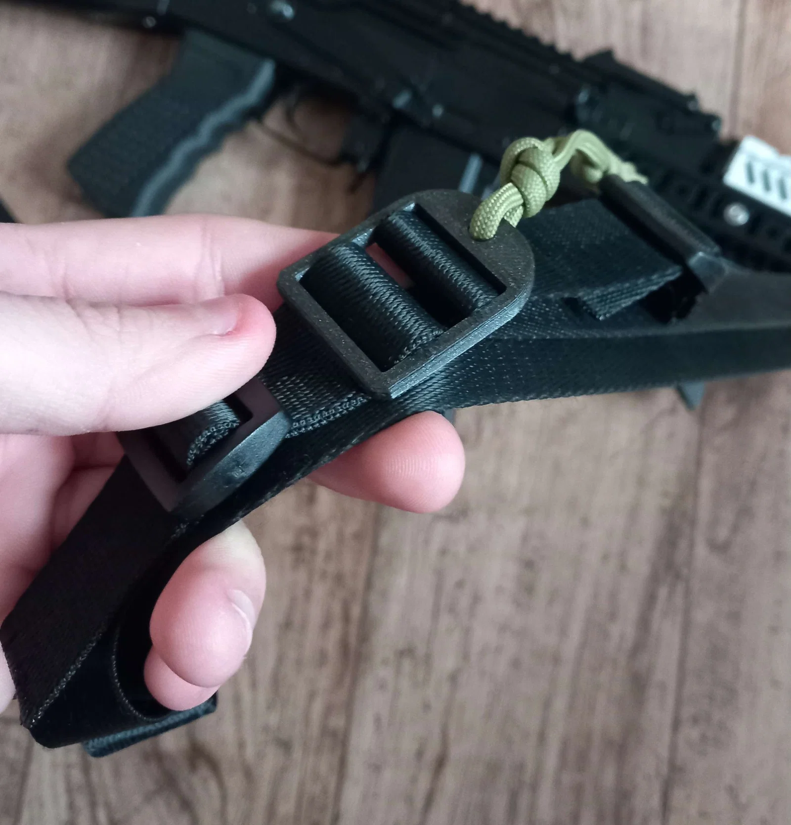 Chế tạo cho dây webbing hoặc sling rộng 25mm. Đây là một bộ phận của dây sling, giúp căng và nhả dây siêu nhanh. Cái lỗ trên bộ căng dây này là để xài với dây paracord 550 nha, tui cũng khuyên bà con đừng có dùng băng keo hay dây thun để cố định phần dây dư á.