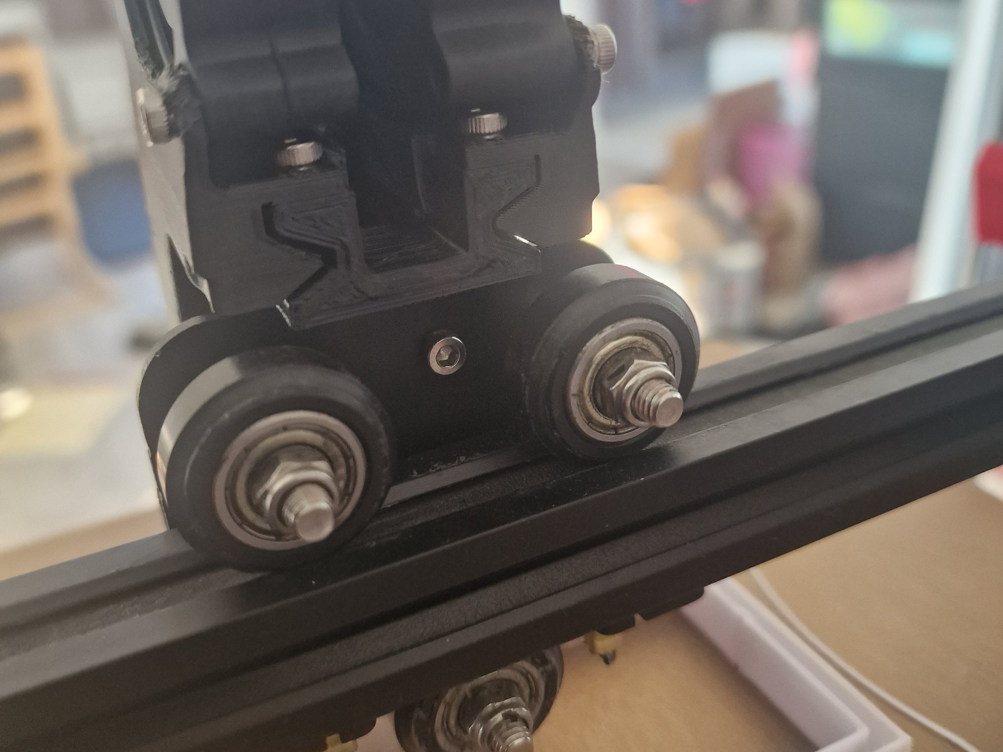 Phiên bản này là bản nháp đầu tiên của tui nhưng gắn vừa khít lên Ender 3 luôn, tui có quên khoét một lỗ ở giữa nhưng mà tui khoan thêm sau khi in xong.