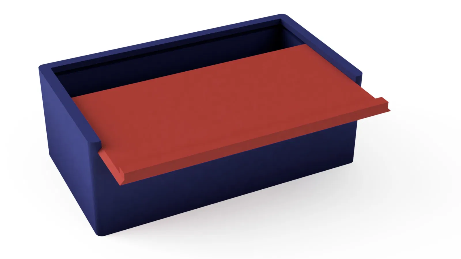 Hộp với nhiều kích cỡ khác nhau có nắp trượt. Kích thước bên trong được cho sẵn. Độ dày thành là 5 mm, đáy 2 mm và nắp 2 mm.