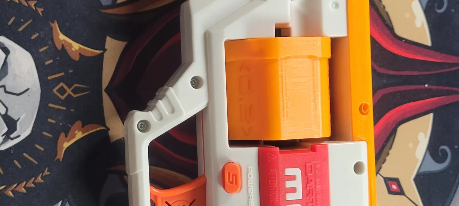 Một đường ray Picatinny hơi mở rộng để phù hợp với mặt tiền mặt phẳng của Redcowl.