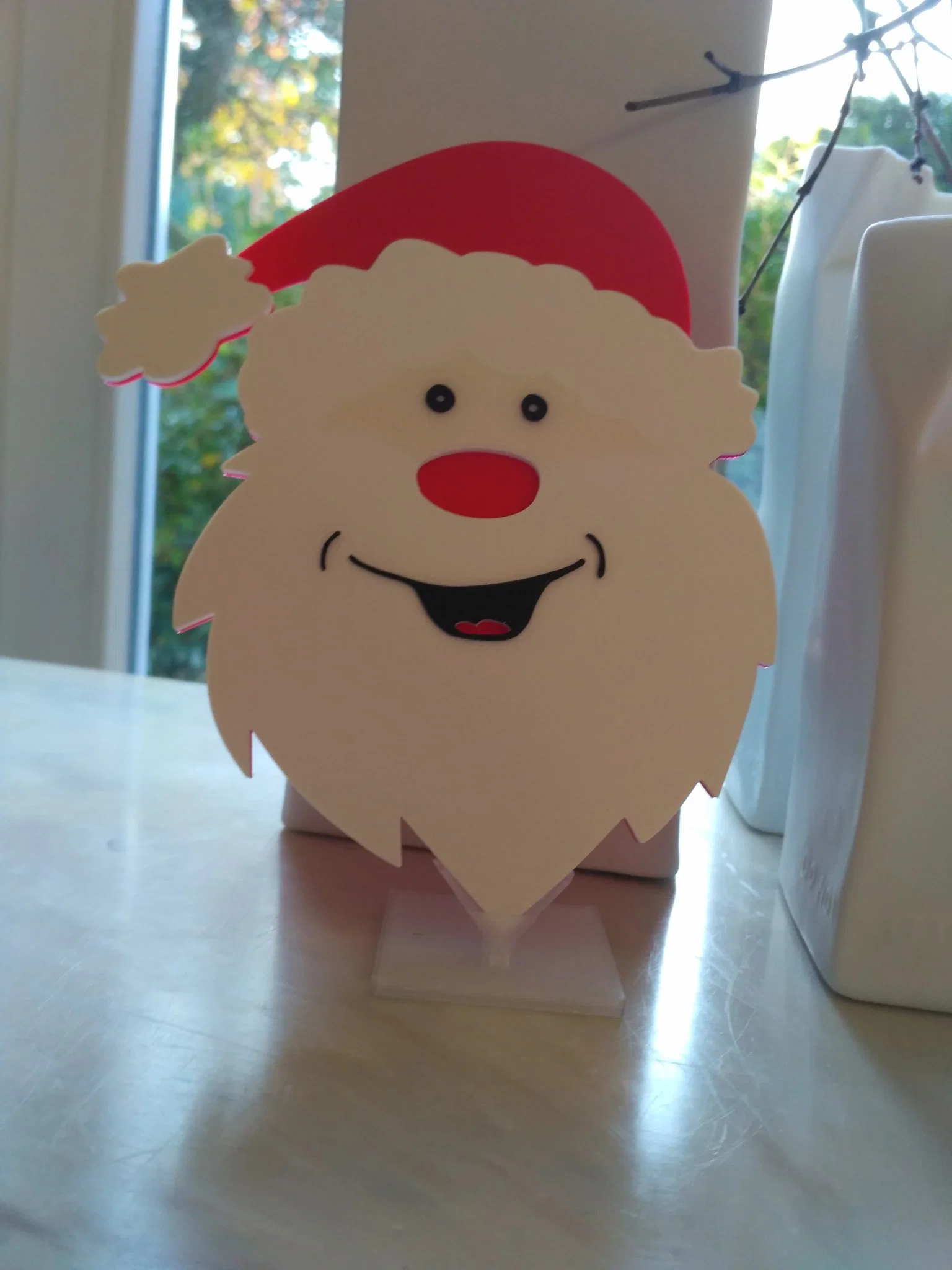 Đầu ông già Noel có đế đi kèm. Mô hình này phù hợp để in 3D với các màu sắc đa dạng, tạo nên một vật trang trí độc đáo cho mùa lễ hội. Bạn có thể tùy chỉnh bốn màu sắc khác nhau để tạo ra phiên bản ông già Noel của riêng mình.