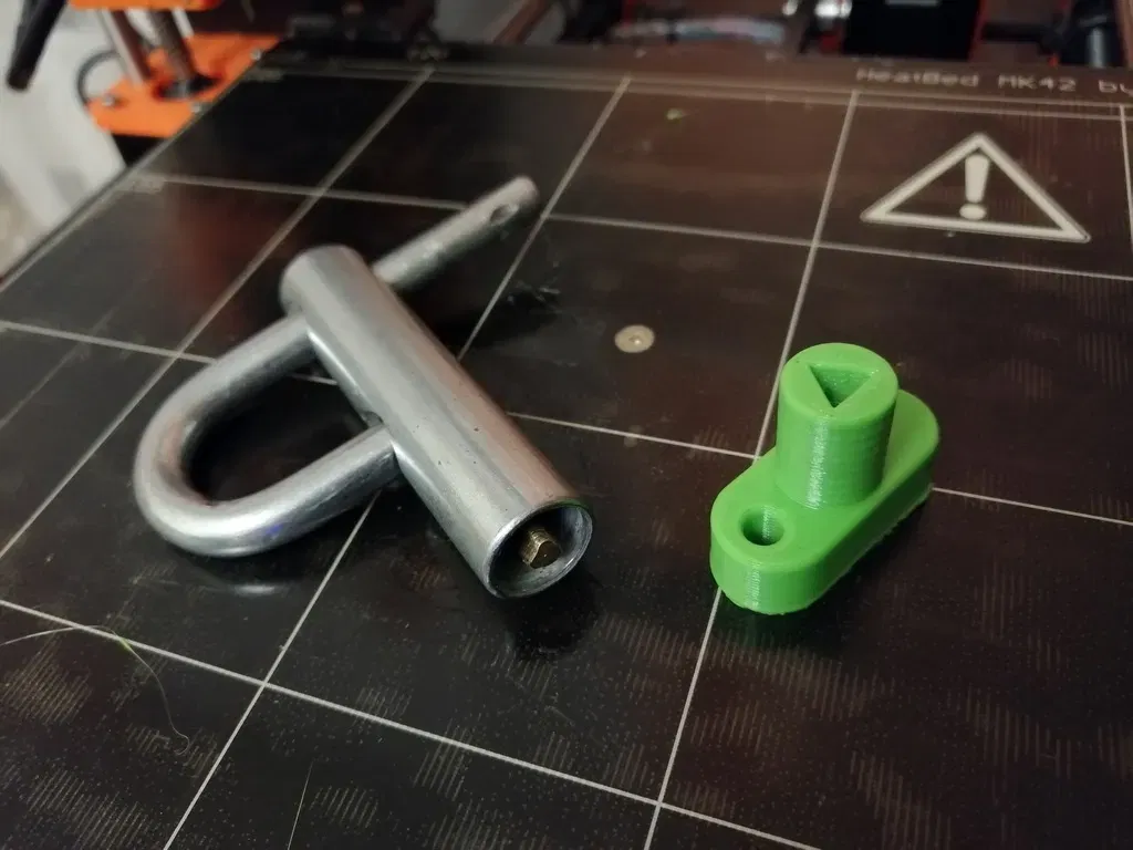 Chìa khóa hình tam giác cho ổ khóa, thiết kế bằng FreeCAD và có file nguồn đi kèm. Hướng dẫn cài đặt in chi tiết cho máy Prusa i3 MK2S với nhựa PETG, độ phân giải 0.2, và độ điền ruột tối thiểu 20%. Bao gồm cả thông tin về hỗ trợ và raft.