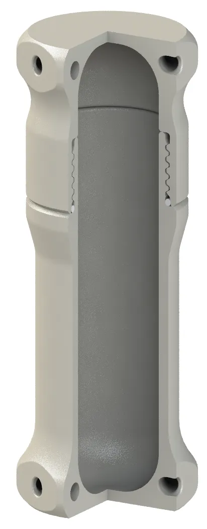 Hộp lưu trữ hình trụ có nắp vặn. Chống thấm nước hoàn toàn khi sử dụng vòng O-ring. Phiên bản V2 này có thêm các mặt đầu hình lục giác để chống lăn.