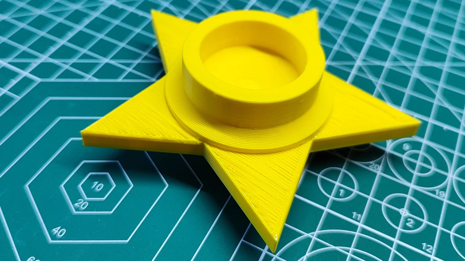 Tui nhập một cái object có cục stud Lego vô, rồi dùng Tinkercad tui thêm một ngôi sao có độ dày 5mm vô cục stud đó. Sau đó tui nhập cái STL vô PrusaSlicer và cắt nó ra sao cho ngôi sao nằm phẳng trên bàn in. Cái object thứ hai tui lật úp lại để có thể in mà không cần support. Tui có đính kèm luôn file 3mf để bạn nào muốn thì xài bản đó ha.